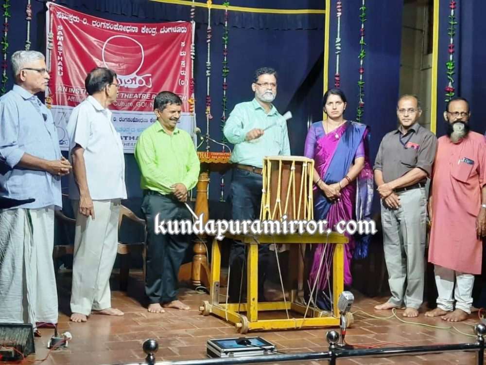 ಗುಂಡ್ಮಿ ಸಾಲಿಗ್ರಾಮದ ಹಂಗಾರಕಟ್ಟೆ ಐರೋಡಿಯ ಯಕ್ಷಗಾನ ಕಲಾಕೇಂದ್ರದ ಸದಾನಂದ ರಂಗಮಂಟಪದಲ್ಲಿ ಶನಿವಾರ ಬೆಂಗಳೂರಿನ ಸಮಸ್ತರು ರಂಗಸಂಶೋಧನಾ ಸಂಸ್ಥೆ ವತಿಯಿಂದ ಭಾಸ ಮಹಾಕವಿಯ ಕರ್ಣಭಾರ ಏಕಾಂಕದ ಪ್ರಥಮ ಯಕ್ಷಗಾನ ಪ್ರದರ್ಶನವನ್ನು ಚಂಡೆ ಬಾರಿಸಿ ಉದ್ಘಾಟಿಸಿ ಮಾತನಾಡಿದರು.