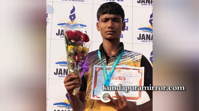 ಕುಂದಾಪುರ: ಇಲ್ಲಿನ ಜನತಾ ಸಮೂಹ ಶಿಕ್ಷಣ ಸಂಸ್ಥೆಗಳ ಆತಿಥ್ಯದಲ್ಲಿ ನಡೆದ ಜಿಲ್ಲಾ ಮಟ್ಟದ ಕ್ರೀಡಾಕೂಟದಲ್ಲಿ ಪಿವಿಎಸ್ ಸರೋಜಿನಿ ಮಧುಸೂದನ ಕುಶೆ ಸರಕಾರಿ ಪ್ರೌಢಶಾಲೆ ವಡೇರಹೋಬಳಿ ಶಾಲೆಯ ವಿದ್ಯಾರ್ಥಿ ಓಟದಲ್ಲಿ 2 ಚಿನ್ನ ಹಾಗೂ 1 ಬೆಳ್ಳಿ ಪದಕ ಪಡೆದು ರಾಜ್ಯ ಮಟ್ಟಕ್ಕೆ ಆಯ್ಕೆಯಾಗಿದ್ದಾರೆ.