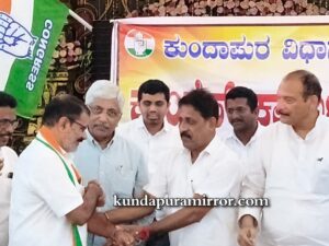 ಮೂರು ಬಾರಿ ಕುಂಭಾಶಿ ಗ್ರಾಮ ಪಂಚಾಯತ್ ಸದಸ್ಯರಾದ , ಮಂಜುನಾಥ್ ಹತ್ವಾರ್ ರವರು, ಗ್ರಾಮೀಣ ಕಾಂಗ್ರೆಸ್ ಅಧ್ಯಕ್ಷರಾದ ಅಣ್ಣಯ್ಯ ಪುತ್ರನ್ ರವರ ನೇತೃತ್ವದಲ್ಲಿ ಕಾಂಗ್ರೆಸ್ ಪಕ್ಷಕ್ಕೆ ಸೇರ್ಪಡೆಗೊಂಡರು.