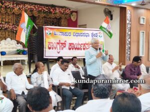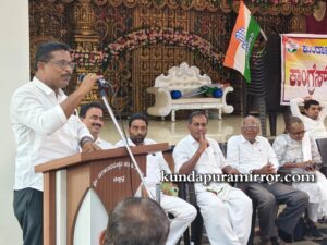 ತೆಕ್ಕಟ್ಟೆಯ ದುರ್ಗಾಪರಮೇಶ್ವರಿ ಸಭಾಂಗಣದಲ್ಲಿ ನಡೆದ ಕುಂದಾಪುರ ವಿಧಾನಸಭಾ ಕ್ಷೇತ್ರದ ಕಾಂಗ್ರೆಸ್ ಕಾರ್ಯಕರ್ತರ ಸಭೆಯನ್ನು ಉದ್ದೇಶಿಸಿ ಮಾತನಾಡಿದರು.