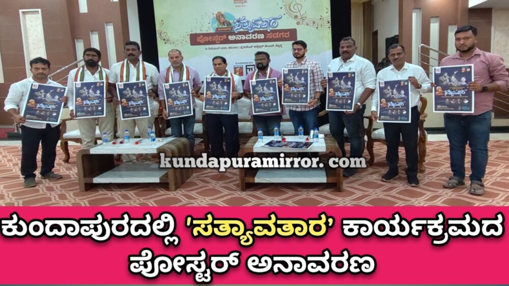 ಕುಂದಾಪುರ :ಸಮುದ್ಯತಾ ಪ್ರಸ್ತುತಿಯಲ್ಲಿ ಡಿಸೆಂಬರ್ 20ರಂದು ಸಂಜೆ ತೆಕ್ಕಟ್ಟೆಯ ಪ್ರೆಸಿಡೆಂಟ್ ಕನ್ವನ್ಷನ್ ಸೆಂಟರ್ನಲ್ಲಿ ನಡೆಯಲಿರುವ ಡಾ.ಸಿ ಅಶ್ವಥ್ ಸ್ವರ ಸಂಯೋಜನೆಯ ಗೀತೆಗಳ ಪ್ರಸ್ತುತಿ ‘ಕುಂದಾಪುರದಲ್ಲಿ ಸತ್ಯಾವತಾರ’ ಕಾರ್ಯಕ್ರಮದ ಪೋಸ್ಟರ್ ಅನಾವರಣ ಕಾರ್ಯಕ್ರಮ ತೆಕ್ಕಟ್ಟೆಯ ಪ್ರೆಸಿಡೆಂಟ್ ಕನ್ವನ್ಷನ್ ಸೆಂಟರ್ನಲ್ಲಿ ಶನಿವಾರ ನಡೆಯಿತು.
