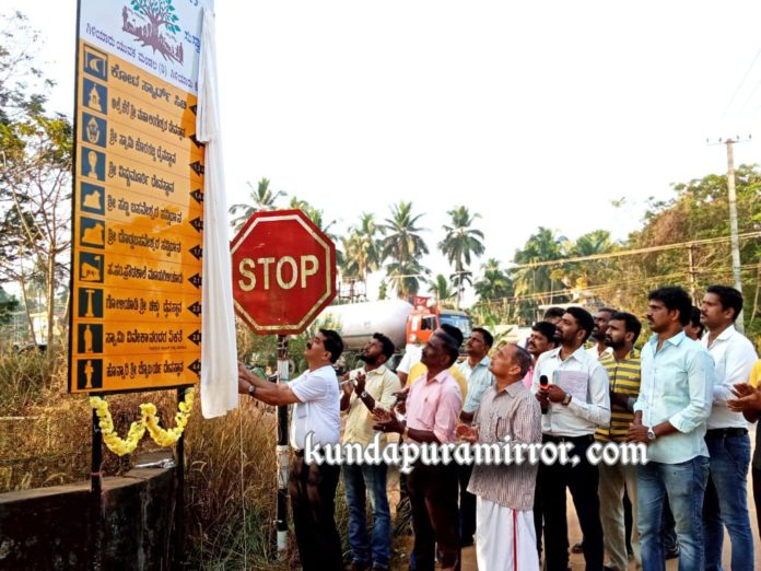 ಕೋಟ: ಗಿಳಿಯಾರು ಯುವಕ ಮಂಡಲ ಗಿಳಿಯಾರು ಇದರ ಆಶ್ರಯದಲ್ಲಿ ಕೋಟ ಗ್ರಾಮ ಪಂಚಾಯತನ ಮೂಡುಗಿಳಿಯಾರು ಸಂಪರ್ಕಿಸುವ ರಸ್ತೆಗೆ ವಿವಿಧ ತಾಣಗಳು ಸಂದರ್ಶಿಸುವ ನಾಮಫಲಕವನ್ನು ನವಕರ್ನಾಟಕ ಬಿಲ್ಡರ್ಸ್ ಮಾಲಿಕ ಸರ್ವೋತ್ತಮ ಶೆಟ್ಟಿ ಅನಾವರಣಗೊಳಿಸಿದರು.