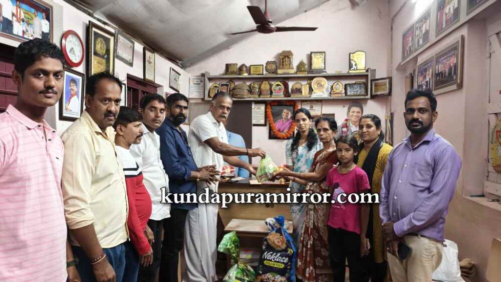 ಇಲ್ಲಿನ ಅಶಕ್ತ ಕುಟುಂಬದ ಸದಸ್ಯೆ ವಿಜಯಲಕ್ಷ್ಮಿ ದಿನಸಿ ಪರಿಕರ ಹಾಗೂ ಆರ್ಥಿಕಸಹಾಯವನ್ನು ಹಸ್ತಾಂತರಿಸಲಾಯಿತು.