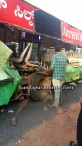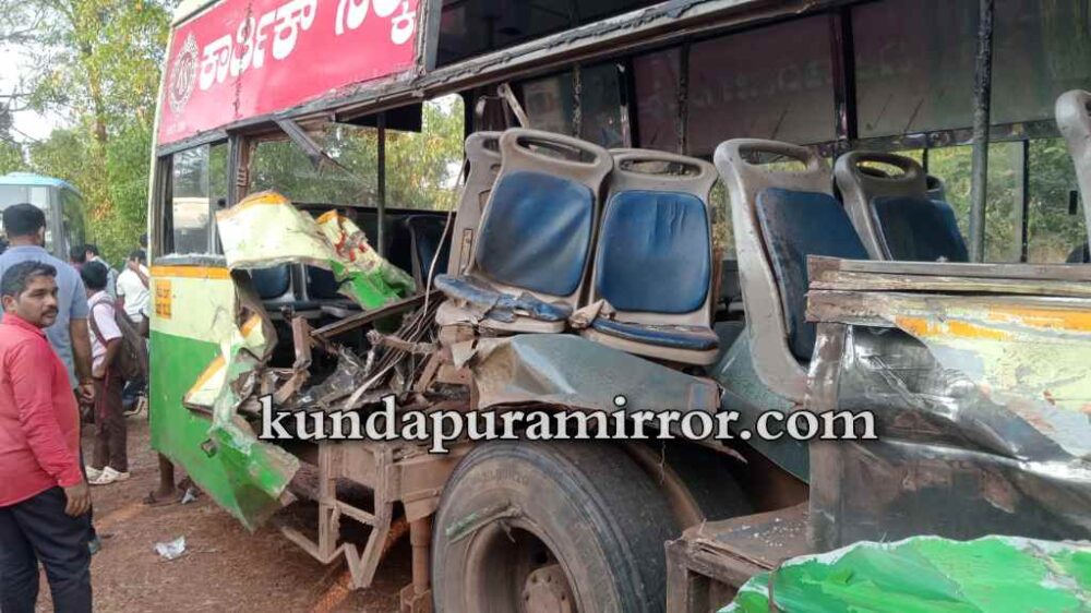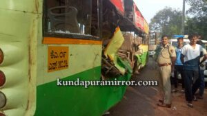 ಕುಂದಾಪುರದಿಂದ ಸಿದ್ದಾಪುರಕ್ಕೆ ಸಂಚರಿಸುತ್ತಿದ್ದ ಕೆಎಸ್ಆರ್ಟಿಸಿ ಬಸ್ಸಿಗೆ ಶೆಟ್ರಕಟ್ಟೆ ತಿರುವಿನ ಬಳಿ ಎದುರಿನಿಂದ ಬಂದ ಟಿಪ್ಪರ್ ಬಸ್ಸಿನ ಚಾಲಕನ ಹಿಂಭಾಗಕ್ಕೆ ಡಿಕ್ಕಿ ಹೊಡೆದಿದೆ. ಶಾಲಾ ಕಾಲೇಜು ಬಿಡುವ ಸಮಯವಾದ್ದರಿಂದ ಬಸ್ಸಿನಲ್ಲಿ ಪ್ರಯಾಣಿಕರು ತುಂಬಿದ್ದು ಅಪಘಾತದ ರಭಸಕ್ಕೆ ಹಲವಾರು ಪ್ರಯಾಣಿಕರು ಗಂಭೀರ ಗಾಯಗೊಂಡಿದ್ದಾರೆ.