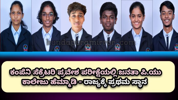 ಹೆಮ್ಮಾಡಿ: ಇನ್ಸ್ಟಿಟ್ಯೂಟ್ ಆಫ್ ಕಂಪನಿ ಸೆಕ್ರೆಟರಿಸ್ ಆಫ್ ಇಂಡಿಯ ನಡೆಸಿದ ಸಿ. ಎಸ್. ಇ. ಇ. ಟಿ (ಕಂಪನಿ ಸಕ್ರೇಟರಿ ಎಕ್ಸಿಕ್ಯೂಟಿವ್ ಎಂಟ್ರೆನ್ಸ್ ಟೆಸ್ಟ್ -ಜನವರಿ 2026)ನಲ್ಲಿ ಜನತಾ ಪದವಿಪೂರ್ವ ಕಾಲೇಜಿನ ವಾಣಿಜ್ಯ ವಿಭಾಗದ ಪರೀಕ್ಷೆ ಬರೆದ 43 ವಿದ್ಯಾರ್ಥಿಗಳಲ್ಲಿ 42 ವಿದ್ಯಾರ್ಥಿಗಳು ಅತ್ಯಧಿಕ ಅಂಕಗಳನ್ನು ಪಡೆಯುದರ ಮೂಲಕ ಸಿ. ಎಸ್ ಎಕ್ಸಿಕ್ಯೂಟಿವ್ ಪ್ರೋಗ್ರಾಮ್ ಗೆ ಅರ್ಹತೆ ಪಡೆದಿದ್ದಾರೆ. ಸಾಧನೆ ಮೆರೆದು ಅರ್ಹತೆ ಪಡೆದ ವಿದ್ಯಾರ್ಥಿಗಳು ಕ್ರಮವಾಗಿ ಸಹನಾ(168), ಅಮೂಲ್ಯ ಆರ್ ಶೆಟ್ಟಿ (166), ಧನುಷ್ ಆರ್ ಹೆಬ್ಬಾರ್( 164), ಪ್ರಥಮ್ ಜಿ ಕಾಂಚನ್(159), ಶಮ್ಯ(156) ಶಿವಮ್(155), ಶಯನ್(154), ಶ್ರೀಶಾ ಆರ್ ಶೆಟ್ಟಿ (154), ಆಶಿತಾ ತೊಳಾರ್ (154), ದ್ರಶ್ಯ ಜಿ ದೇವಾಡಿಗ(153), ಸಂಕೇತ್ ಎಸ್ ಬಿಲ್ಲವ(153), ಆದಿತ್ಯ ಆರ್ ಶೆಟ್ಟಿ (151), ಪ್ರಜ್ವಲ್(148), ಶಮಿತ್ ಬಿ ಪೂಜಾರಿ(145), ಪ್ರೀಥನ್ (142), ಸಂಜಯ್(142), ಶ್ರೀಶಾ ಕೆ.ಎಸ್ (136), ವೈಭವ್(134), ರಾಹುಲ್ ಶ್ರೀಯಾನ್ (134), ಮೋಹಿತ್(133), ಸ್ಪಂದನ (130), ನಿಶ್ಚಿತ್ (130), ಪೂಜಾರಿ ತನ್ವಿ ಲವ (126), ಶ್ರೇಷ್ಠ ಆರ್ ನಾಯಕ್(125), ಪಲ್ಲವಿ ಆರ್ ಪೂಜಾರಿ (123), ಪ್ರಥಮ್ ಮಯ್ಯ(122), ಹಿರಣ್ಮಯಿ(120), ಸತ್ಯನಾರಾಯಣ (118), ಸಾನಿಕ(116), ಶಶಾಂಕ್ ಡಿ ರಾವ್(115), ರಫಾ(114), ಶ್ರೇಯಸ್ ಎನ್ ಪೂಜಾರಿ (112), ಸಾತ್ವಿಕ್ ಶೆಟ್ಟಿ (112), ಅಮೂಲ್ಯ ಯು ಗಾಣಿಗ(111), ಲೆಸ್ಟರ್ (111), ಶಿವಾನಿ ಎನ್ (110), ಐಶ್ವರ್ಯ (109), ಅಶ್ಮಿತ್ (101), ಶಶಾಂಕ್ ಆರ್ ನಾಯಕ್(100), ಸನದ್ (100), ಸಾನ್ವಿ (100), ಸನ್ನಿಧಿ (100) ಗ್ರಾಮೀಣ ಭಾಗದ ಪರಿಸರದಲ್ಲಿ ಆರಂಭಗೊಂಡಿರುವ ಶಿಕ್ಷಣ ಸಂಸ್ಥೆಯಲ್ಲಿ ಸ್ಪರ್ಧಾತ್ಮಕ ಪರೀಕ್ಷೆಗಳಿಗೆ ಅತ್ಯುತ್ತಮ ತರಬೇತಿ ನೀಡುತ್ತಾ ಉತ್ತಮ ಶಿಕ್ಷಣ ನೀಡಲಾಗುತ್ತಿದೆ.