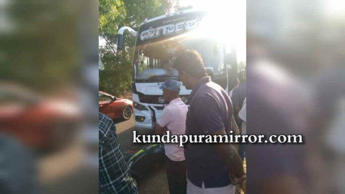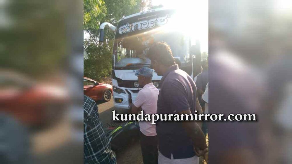 ಕುಂದಾಪುರ :ಗುಲ್ವಾಡಿ ಗ್ರಾಮ ಪಂಚಾಯತ್ ವ್ಯಾಪ್ತಿಯ ಶೆಟ್ರಕಟ್ಟೆ ತಿರುವಿನ ಬಳಿ ಖಾಸಗಿ ಬಸ್ಸಿಗೆ ವೇಗವಾಗಿ ಬಂದ ಬೈಕ್ ಮುಖಾಮುಖಿಯಾಗಿ ಡಿಕ್ಕಿ ಹೊಡೆದ ಪರಿಣಾಮ ಬೈಕ್ ಸವಾರ ಸ್ಥಳದಲ್ಲಿಯೇ ಸಾವನ್ನಪ್ಪಿದ ಘಟನೆ ಶನಿವಾರ ಬೆಳಿಗ್ಗೆ ಸಂಭವಿಸಿದೆ.