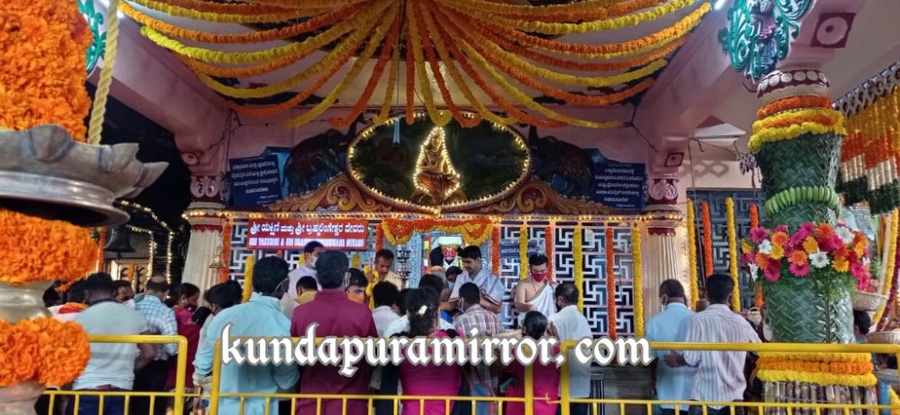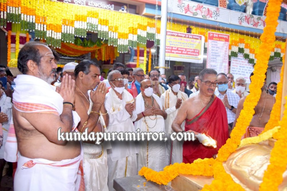 ಬೆಳಿಗ್ಗೆ ದೇವಸ್ಥಾನದಲ್ಲಿ ಅರ್ಚಕ ಶ್ರೀಧರ ಮಂಜರ ನೇತ್ರತ್ವದಲ್ಲಿ ಮಂಗಳಾರತಿ ಹಾಗೂ ಇತರ ಧಾರ್ಮಿಕ ವಿಧಿಗಳನ್ನು ವಿದ್ಯುಕ್ತವಾಗಿ ಆಚರಿಸಲಾಯಿತು. ಶಾಸಕ ಬಿ.ಎಮ್.ಸುಕುಮಾರ ಶೆಟ್ಟಿ, ದೇವಸ್ಥಾನದ ಆಡಳಿತ ಧರ್ಮದರ್ಶಿ ಸದಾಶಿವ ಶೆಟ್ಟಿ, ವ್ಯವಸ್ಥಾಪಕ ನಾರಾಯಣ ಶೆಟ್ಟಿ, ಉದ್ಯಮಿ ಕೃಷ್ಣಮೂರ್ತಿ ಮಂಜ, ಕೊಲ್ಲೂರು ಮೂಕಾಂಬಿಕಾ ದೇವಸ್ಥಾನದ ವ್ಯವಸ್ಥಾಪನಾ ಸಮಿತಿ ಅಧ್ಯಕ್ಷ ಚಂದ್ರಶೇಖರ ಶೆಟ್ಟಿ ಕೆರಾಡಿ, ಸದಸ್ಯ ಡಾ.ಅತುಲಕುಮಾರ ಶೆಟ್ಟಿ, ಮಾಜಿ ಸದಸ್ಯ ವಂಡಬಳ್ಳಿ ಜಯರಾಮ ಶೆಟ್ಟಿ, ನಿವೃತ್ತ ಕೃಷಿ ಇಲಾಖೆಯ ಅಧಿಕಾರಿ ರಘುರಾಮ ಶೆಟ್ಟಿ , ದೇಗುಲದ ಪಾತ್ರಿಗಳಾದ ಶ್ರೀಧರ ಮಾರ್ಡಿ ಹಾಗೂ ಗಣಪಯ್ಯ ಶೆಟ್ಟಿ, ಬೈಂದೂರು ಬಿಜೆಪಿ ಮಂಡಲ ಅಧ್ಯಕ್ಷ ದೀಪಕ್ಕುಮಾರ ಶೆಟ್ಟಿ ಇದ್ದರು.