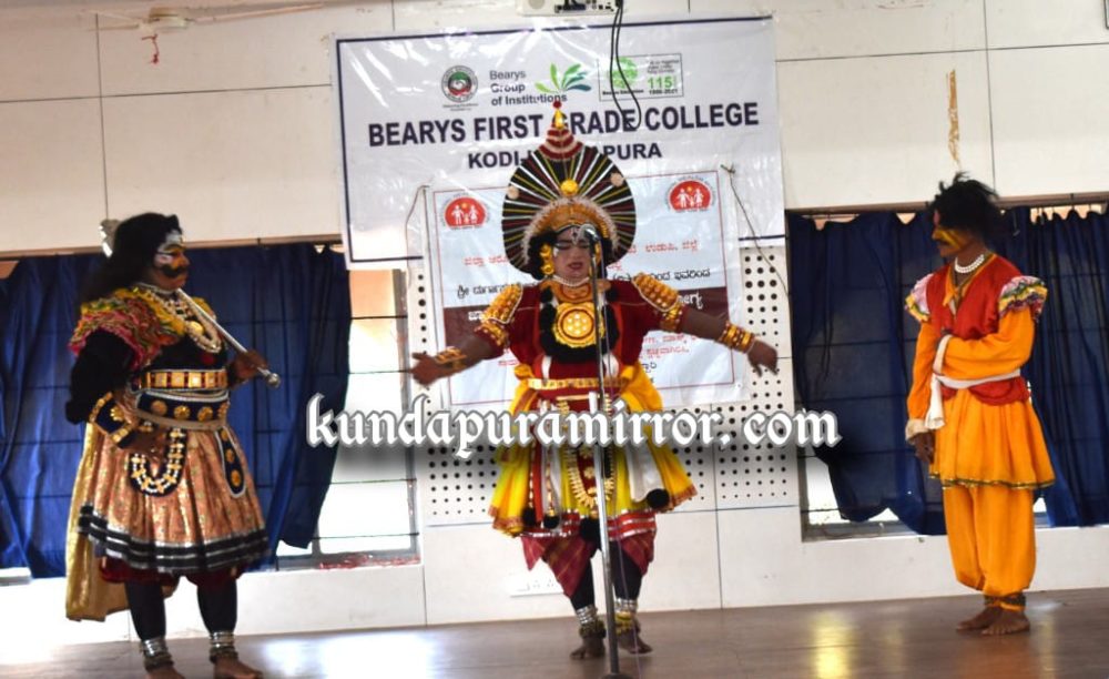 ಕೋಡಿ: ಬ್ಯಾರೀಸ್ ಪ್ರಥಮ ದರ್ಜೆ ಕಾಲೇಜು ಹಾಗೂ ಜಿಲ್ಲಾ ಆರೋಗ್ಯ ಮತ್ತು ಕುಟುಂಬ ಕಲ್ಯಾಣ ಇಲಾಖೆ ಉಡುಪಿ ಇದರ ಸಹಯೋಗದಲ್ಲಿ ಶ್ರೀದುರ್ಗಾಪರಮೇಶ್ವರಿ ಯಕ್ಷಕಲಾ ಟ್ರಸ್ಟ್(ರಿ) ಉಪ್ಪುಂದ ಇವರಿಂದ ಯಕ್ಷಗಾನದ ಮೂಲಕ ಕೊರೋನಾ ಜಾಗೃತಿ ಕಾರ್ಯಕ್ರಮ ಕೋಡಿ ಬ್ಯಾರೀಸ್ ಸೀಸೈಡ್ ಪಬ್ಲಿಕ್ ಸ್ಕೂಲ್ನ ಸಭಾಂಗಣದಲ್ಲಿ ನೆರವೇರಿತು. ಕಾರ್ಯಕ್ರಮದಲ್ಲಿ ಕೋಡಿ ಪ್ರಾಥಮಿಕ ಆರೋಗ್ಯ ಕೇಂದ್ರದ ವೈದ್ಯಾಧಿಕಾರಿ ಡಾ.ಉಮೇಶ್ ನಾಯಕ್, ಆರೋಗ್ಯ ಕೇಂದ್ರದ ಸಿಬ್ಬಂದಿವರ್ಗ, ಬೋಧಕ ಹಾಗೂ ಬೋಧಕೇತರ ವೃಂದ ಹಾಗೂ ಪದವಿ ವಿದ್ಯಾರ್ಥಿಗಳು ಕಾರ್ಯಕ್ರಮದಲ್ಲಿ ಉಪಸ್ಥಿತರಿದ್ದರು.