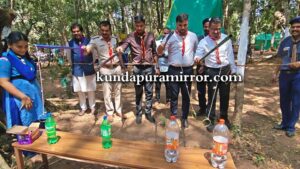 ಕುಂದಾಪುರ ರೇಂಜ್ ಫಾರೆಸ್ಟ್ ಅಧಿಕಾರಿ ರಾಘವೇಂದ್ರ ಎಂ ನಾಯ್ಕ್ ಅವರು ಮಾತನಾಡಿ, ನಾವೆಲ್ಲರೂ ಹಕ್ಕು ಮತ್ತು ಕರ್ತವ್ಯವನ್ನು ಪಾಲಿಸಿಕೊಂಡು ಸಂವಿದಾನದ 51 ಜೆ ಅಡಿಯಲ್ಲಿ ಪರಿಸರದ ಹಕ್ಕಿಗೆ ನಾವೆಲ್ಲರೂ ಬದ್ಧರಾಗಬೇಕು. ಗಿಡಗಳನ್ನು ನೆಡುವುದು, ಪ್ಲಾಸ್ಟಿಕ್ ಬಳಕೆ ಕಡಿಮೆ ಮಾಡಿ, ನೀರು ವಿದ್ಯುತ್ ಪೋಲಾಗದಂತೆ ಗಮನದಲ್ಲಿರಿಸಿಕೊಂಡು ಮೊಬೈಲ್ ಬಳಕೆಯನ್ನು ಕಡಿಮೆ ಮಾಡಿ ಸುಂದರ ಪರಿಸರದೊಂದಿಗೆ ಬದುಕಿದಾಗ ಉತ್ತಮ ಪರಿಸರ ಸ್ನೇಹಿ ನಾಯಕರಾಗಿ ಬೆಳೆಯಬಹುದು ಎಂದರು.