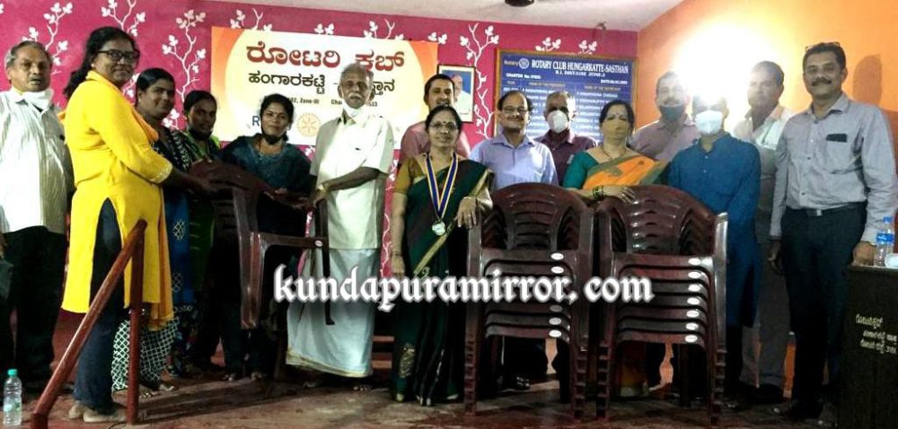 ಕೋಟ: ರೋಟರಿ ಕ್ಲಬ್ ಹಂಗಾರಕಟ್ಟೆ ಸಾಸ್ತಾನ ವತಿಯಿಂದ ಸಾಸ್ತಾನ ಮಹಿಳಾ ಮಂಡಲದ ಕಾರ್ಯಾಲಯಕ್ಕೆ ಅವಶ್ಯವಿರುವ ಕುರ್ಚಿ ಗಳನ್ನು ಹಸ್ತಾಂತರಿಸುವ ಕಾರ್ಯಕ್ರಮ ರೋಟರಿ ಭವನದಲ್ಲಿ ನಡೆಯಿತು.