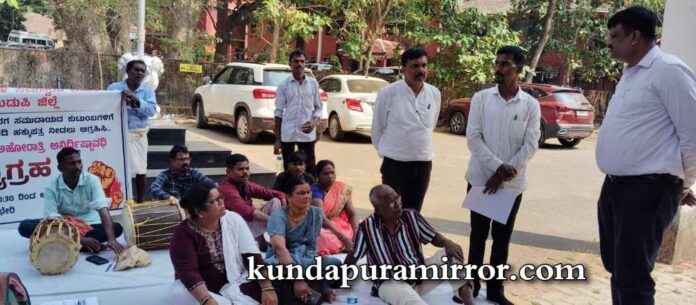 ಕುಂದಾಪುರ ತಹಶೀಲ್ದಾರ್ ಕಛೇರಿ ಎದುರು ದಿನಾಂಕ : 23, ಫೇಬ್ರವರಿ,2026 ಸೋಮವಾರ ಬೆಳಿಗ್ಗೆ 10:30 ರಿಂದ ಧರಣಿ ಆರಂಭವಾಗಿತ್ತು. ಸಮಾಜ ಕಲ್ಯಾಣ ಇಲಾಖೆಯವರು ಧರಣಿ ಸ್ಥಳಕ್ಕೆ ಆಗಮಿಸಿ ಮನವಿ ಸ್ವೀಕರಿಸಿ ಕಂದಾಯ ಇಲಾಖೆ ಸಮನ್ವಯತೆಯಲ್ಲಿ ಅಗತ್ಯ ಕ್ರಮ ವಹಿಸುದಾಗಿ ತಿಳಿಸಿರುತ್ತಾರೆ.