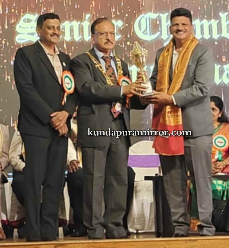ಕುಂದಾಪುರ :ಸೀನಿಯರ್ ಚೇಂಬರ್ ಇಂಟರ್ ನ್ಯಾಷನಲ್ ಬೆಂಗಳೂರು ಲೀಜನ್ ಆತಿಥ್ಯದಲ್ಲಿ ಬೆಂಗಳೂರಿನ ಬಂಟರ ಸಭಾ ಭವನದಲ್ಲಿ ರಾಷ್ಟ್ರೀಯ ಸಮ್ಮೇಳನದಲ್ಲಿ SCI ರಾಷ್ಟ್ರೀಯ ನಿರ್ದೇಶಕರಾದ ಹುಸೇನ್ ಹೈಕಾಡಿಯವರಿಗೆ ಔಟ್ ಸ್ಟ್ಯಾಂಡಿಂಗ್ ನ್ಯಾಷನಲ್ ಡೈರೆಕ್ಟರ್ ವಿನ್ನರ್ ಅವಾರ್ಡ್ನ್ನು SCI ರಾಷ್ಟ್ರೀಯ ಅಧ್ಯಕ್ಷರಾದ SNR PPS MR ಜಯೇಶಾ ರವರು ನೀಡಿದರು.