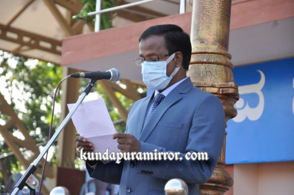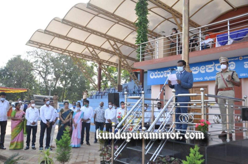 ಅವರು ಬುಧವಾರ ತಾಲೂಕು ಆಡಳಿತದ ವತಿಯಿಂದ ಕುಂದಾಪುರ ಗಾಂಧಿ ಮೈದಾನದಲ್ಲಿ ಜರುಗಿದ 73 ನೇ ಗಣರಾಜ್ಯೋತ್ಸವದ ದ್ವಜಾರೋಹಣಗೈದು ಸಂದೇಶ ನೀಡಿದರು.