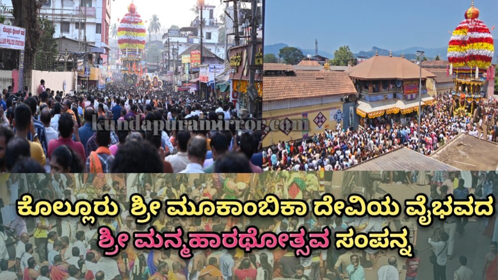 ಕೊಲ್ಲೂರು: ದಕ್ಷಿಣ ಭಾರತದ ಪ್ರಸಿದ್ದ ತೀರ್ಥಕ್ಷೇತ್ರಗಳಲ್ಲೊಂದಾದ ಕೊಲ್ಲೂರು ಶ್ರೀ ಮೂಕಾಂಬಿಕಾ ದೇವಿಯ ವಾರ್ಷಿಕ ಮನ್ಮಹಾರಥೋತ್ಸವ ಸೋಮವಾರ ಸಡಗರ ಸಂಭ್ರಮದಿಂದ ಜರುಗಿತು.