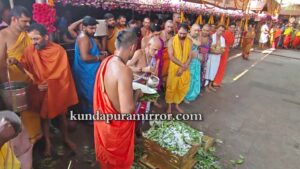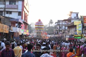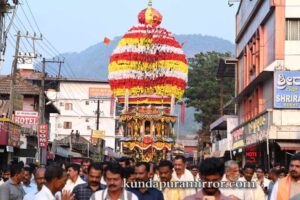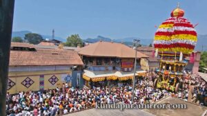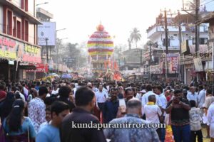 ಕೊಲ್ಲೂರು ಕ್ಷೇತ್ರದ ಅಧಿದೇವತೆ ಹಾಗೂ ಗ್ರಾಮದೇವತೆ ಶ್ರೀ ಮೂಕಾಂಬಿಕಾ ಅಮ್ಮನವರ ವಾರ್ಷಿಕ ಜಾತ್ರಾ ಮಹೋತ್ಸವಕ್ಕೆ ಧ್ವಜಾರೋಹಣದೊಂದಿಗೆ ಚಾಲನೆ ನೀಡಲಾಗಿತ್ತು. ರಥೋತ್ಸವದ ಪ್ರಯುಕ್ತ ಊರಿನ ಹತ್ತು ಸಮಸ್ತರು, ಭಕ್ತಾದಿಗಳು ಸೇರಿ ತಮ್ಮ ಅಂಗಡಿ ಮುಂಗಟ್ಟು ಮನೆ, ಬೀದಿಗಳನ್ನು ವಿಶೇಷವಾದ ವಿದ್ಯುದ್ದೀಪಗಳಿಂದ ಅಲಂಕರಿಸಿದ್ದರು.