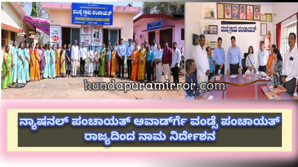 ಕುಂದಾಪುರ: ಕೇಂದ್ರ ಸರಕಾರದ ಪಂಚಾಯತ್ ರಾಜ್ ಮಂತ್ರಾಲಯದಿಂದ ‘ಸುಸ್ಥಿರ ಅಭಿವೃದ್ಧಿ ಗುರಿಗಳು’ ಎನ್ನುವ ವಿಷಯದ ಮೇಲೆ 9 ವಿಭಾಗಗಳಲ್ಲಿ ನ್ಯಾಷನಲ್ ಪಂಚಾಯತ್ ಆವಾರ್ಡ್ ನೀಡುತ್ತಿದ್ದು, ‘ಆರೋಗ್ಯಕರ ಗ್ರಾಮ ಪಂಚಾಯತ್’ ವಿಭಾಗದಲ್ಲಿ ರಾಜ್ಯದಿಂದ ವಂಡ್ಸೆ ಗ್ರಾಮ ಪಂಚಾಯತ್ ಕೇಂದ್ರ ಸರಕಾರಕ್ಕೆ ನಾಮ ನಿರ್ದೇಶನಗೊಂಡಿದೆ.