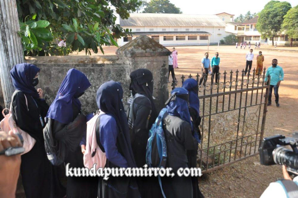 ರಾಜ್ಯ ಸರಕಾರ ಕಾಲೇಜು ಆವರಣದೊಳಕ್ಕೆ ಸಮವಸ್ತ್ರ ಧರಿಸಿದ ವಿದ್ಯಾರ್ಥಿಗಳ ಹೊರತಾಗಿ ಇತರರಿಗೆ ಪ್ರವೇಶವಿಲ್ಲ ಎಂಬ ಆದೇಶ ಹೊರಡಿಸಿದ್ದರಿಂದ ಪ್ರಾಂಶುಪಾಲರು ಮನವೊಲಿಸುವ ಪ್ರಯತ್ನ ಮಾಡಿದರಾದರೂ ವಿದ್ಯಾರ್ಥಿನಿಯರು ಒಪ್ಪದ ಕಾರಣ ಅವರನ್ನು ಪ್ರತ್ಯೇಕ ಕೊಠಡಿಯಲ್ಲಿ ಕೂರಿಸಲಾಯಿತು.