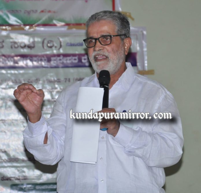 ಅವರು ಸಿದ್ಧಾಪುರ ಗ್ರಾಮ ಪಂಚಾಯತ್ ಸಭಾಂಗಣದಲ್ಲಿ ಉಡುಪಿ ಜಿಲ್ಲಾ ರೈತ ಸಂಘದ ಸಿದ್ಧಾಪುರ ವಲಯದ ವತಿಯಿಂದ ನೆಡೆದ ಸಿದ್ದಾಪುರ ವ್ಯಾಪ್ತಿಯ ವರಾಹಿ ಅಚ್ಚುಕಟ್ಟು ಪ್ರದೇಶದ ರೈತರ ಸಭೆಯನ್ನು ಉದ್ದೇಶಿಸಿ ಮಾತನಾಡಿದರು.