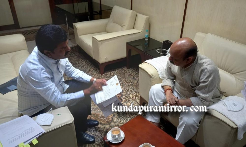 ಕುಂದಾಪುರ: ವಿಧಾನಸಭಾ ಕ್ಷೇತ್ರ ವ್ಯಾಪ್ತಿಯ ಗ್ರಾಮೀಣ ಮತ್ತು ನಗರ ಪ್ರದೇಶಗಳಿಗೆ ಕೇಂದ್ರ ಸರ್ಕಾರ ಹಾಗೂ ನಬಾರ್ಡ ಸಹಯೋಗದ ಜಲ ಜೀವನ ಮಿಷನ್ ಯೋಜನೆಯಡಿ ಮನೆ ಮನೆಗೆ ನೀರು ಸರಬರಾಜು ಮಾಡುವ ರೂ.400 ಕೋಟಿಗಳ ಪ್ರಸ್ತಾವನೆಗೆ ಸಚಿವ ಸಂಪುಟದ ಅನುಮೋದನೆ ನೀಡುವಂತೆ ಶಿವಮೊಗ್ಗ ಸಂಸದರಾದ ಬಿ.ವೈ.ರಾಘವೇಂದ್ರ ಅವರು ಮುಖ್ಯಮಂತ್ರಿಗಳಲ್ಲಿ ವಿನಂತಿಸಿದರು.
