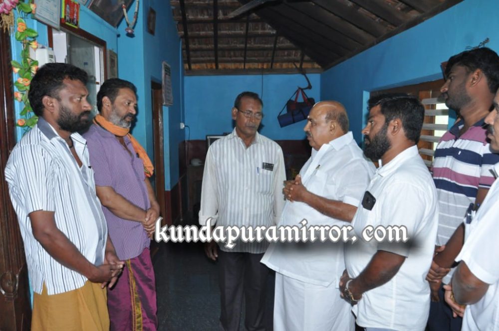 ಕುಂದಾಪುರ: ಫೆ.25ರಂದು ಸೌಕೂರು ರಥೋತ್ಸವಕ್ಕೆ ಶುಭ ಕೋರಿ ಬ್ಯಾನರ್ ಅಳವಡಿಸುತ್ತಿದ್ದ ವೇಳೆ ವಿದ್ಯುತ್ ಶಾಕ್ನಿಂದ ಮೃತ ಪಟ್ಟ ಸೌಕೂರು ನಿವಾಸಿ ಪ್ರಶಾಂತ್ ದೇವಾಡಿಗ ಅವರ ಕುಟುಂಬ ಬೈಂದೂರು ಕ್ಷೇತ್ರದ ಶಾಸಕ ಬಿ.ಎಂ. ಸುಕುಮಾರ್ ಶೆಟ್ಟಿಯವರು ವೈಯಕ್ತಿಕ ನೆಲೆಯಲ್ಲಿ ರೂ.1 ಲಕ್ಷವನ್ನು ನೀಡಿದರು.