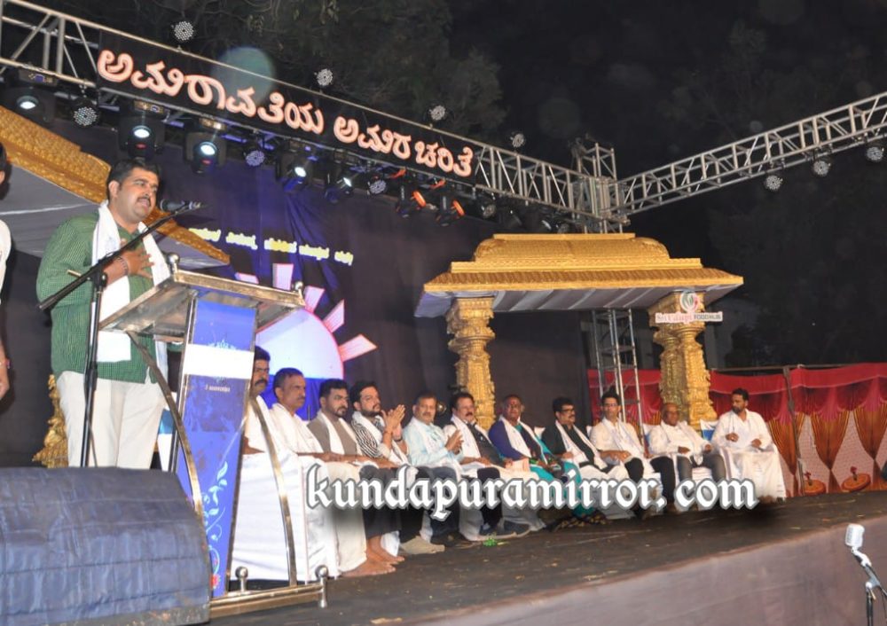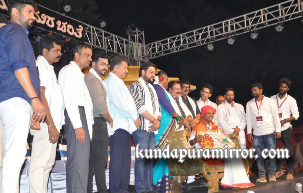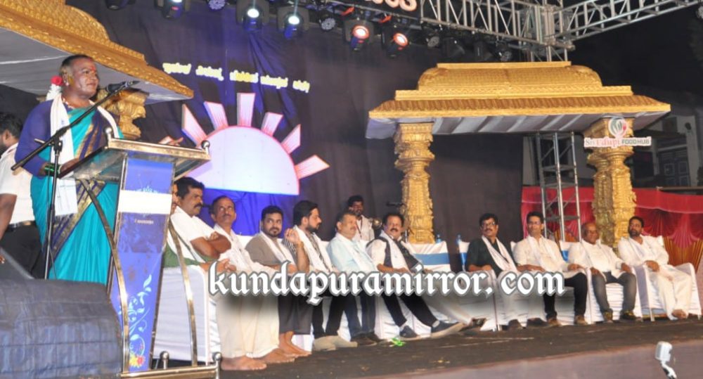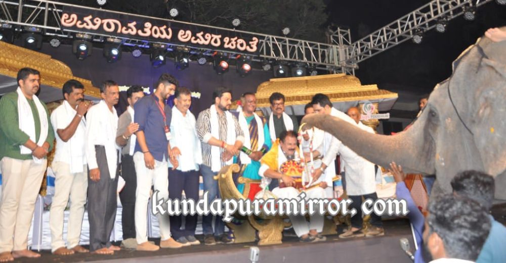 ಯಕ್ಷಕಾಶಿ ಕುಂದಾಪುರದ ನೆಹರೂ ಮೈದಾನದಲ್ಲಿ ಉದ್ಯಮಿ ಮಂಜುನಾಥ್ ಪೂಜಾರಿ ಬೆಳ್ಳಾಡಿ ಸಾರಥ್ಯದಲ್ಲಿ ಶನಿವಾರ ಪ್ರದರ್ಶನಗೊಂಡ ಅಮರಾವತಿಯ ಅಮರ ಚರಿತೆ ಯಕ್ಷಗಾನಕ್ಕೂ ಮುನ್ನ ನಡೆದ ಸಭಾ ಕಾರ್ಯಕ್ರಮದಲ್ಲಿ ದೂರದ ಹರಿಹರ ಮಠದಿಂದ ಆಗಮಿಸಿದ ನಿಜ ಗಜರಾಜನಿಂದ ಸನ್ಮಾನಗೊಂಡ ಬಳಿಕ ಮಾತನಾಡಿದರು.