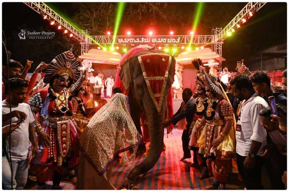ಯಕ್ಷಕಾಶಿ ಕುಂದಾಪುರದ ನೆಹರೂ ಮೈದಾನದಲ್ಲಿ ಉದ್ಯಮಿ ಮಂಜುನಾಥ್ ಪೂಜಾರಿ ಬೆಳ್ಳಾಡಿ ಸಾರಥ್ಯದಲ್ಲಿ ಶನಿವಾರ ಪ್ರದರ್ಶನಗೊಂಡ ಅಮರಾವತಿಯ ಅಮರ ವೈಭವವು ಗಜರಾಜನ ಆಗಮನ ಸಹಿತ ಹತ್ತಾರು ಹೊಸತನಕ್ಕೆ ಸಾಕ್ಷಿಯಾಯಿತು. ಹಿರಿಯ ಯಕ್ಷಗಾನ ಕಲಾವಿದ ಬಳ್ಕೂರು ಕೃಷ್ಣ ಯಾಜಿ, ಭಾಗವತ ರಾಘವೇಂದ್ರ ಆಚಾರ್ಯ ಜನ್ಸಾಲೆ, ಜಾಗತಿಕ ಬಂಟರ ಸಂಘದ ಅಧ್ಯಕ್ಷ ಐಕಳ ಹರೀಶ್ ಶೆಟ್ಟಿ, ಉಡುಪಿ ಫುಡ್ ಹಬ್ನ ಡಾ| ಅಶೋಕ್ ಶೆಟ್ಟಿ ಬೆಳ್ಳಾಡಿ ಅವರನ್ನು ಸನ್ಮಾನಿಸಲಾಯಿತು.
