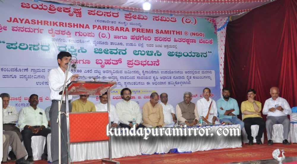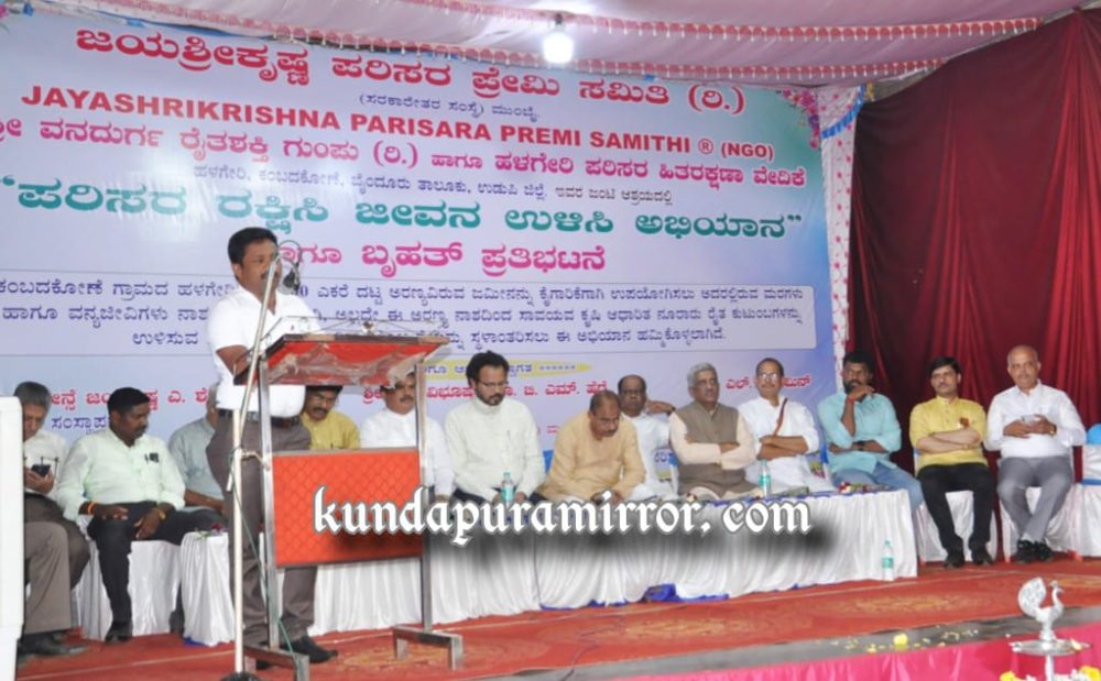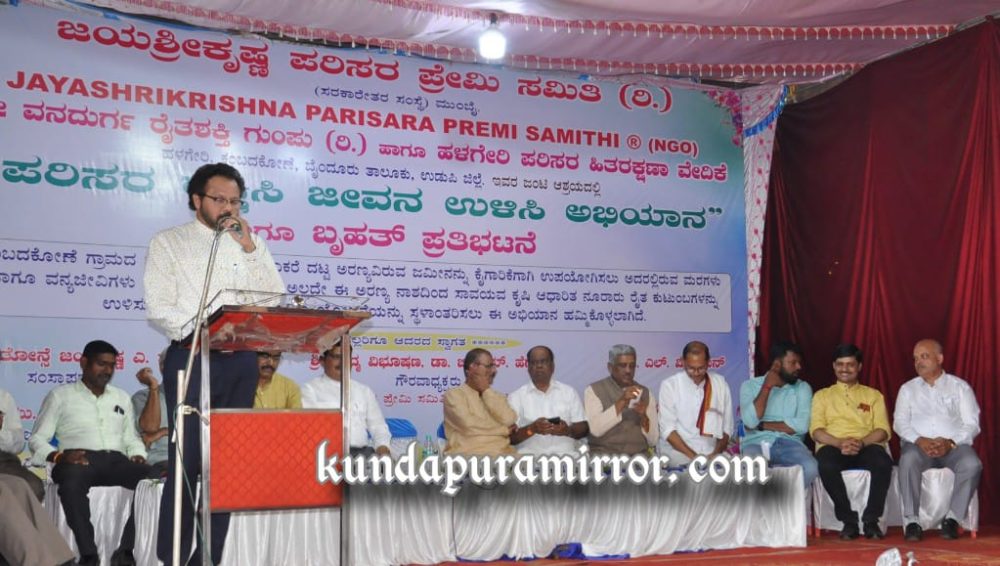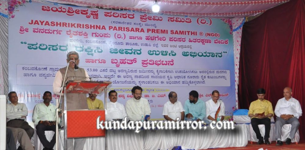ಅವರು ಜಯಶ್ರೀಕೃಷ್ಣ ಪರಿಸರ ಪ್ರೇಮಿ ಸಮಿತಿ ರಿ. ಸರಕಾರೇತರ ಸಂಸ್ಥೆ ವನದುರ್ಗ ರೈತಶಕ್ತಿ ಗುಂಪು ರಿ. ಮತ್ತು ಹಳಗೇರಿ ಪರಿಸರ ಹಿತರಕ್ಷಣಾ ವೇದಿಕೆ ಸಹಯೋಗದಲ್ಲಿ ಮಾ.10ರಂದು ಮಹಾಲಸ ಕಲ್ಚರಲ್ ಹಾಲ್ನಲ್ಲಿ ನಡೆದ ಪರಿಸರ ರಕ್ಷಿಸಿ-ಜೀವನ ಉಳಿಸಿ ಅಭಿಯಾನ ಮತ್ತು ಬೃಹತ್ ಪ್ರತಿಭಟನೆ ಉದ್ಘಾಟಿಸಿ ಮಾತನಾಡಿದರು.