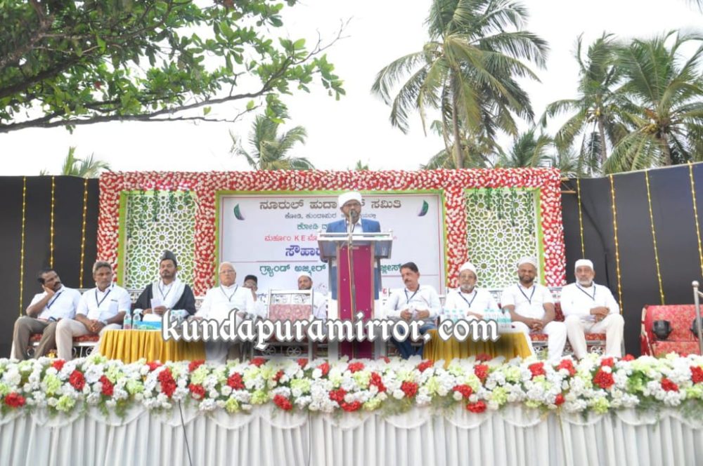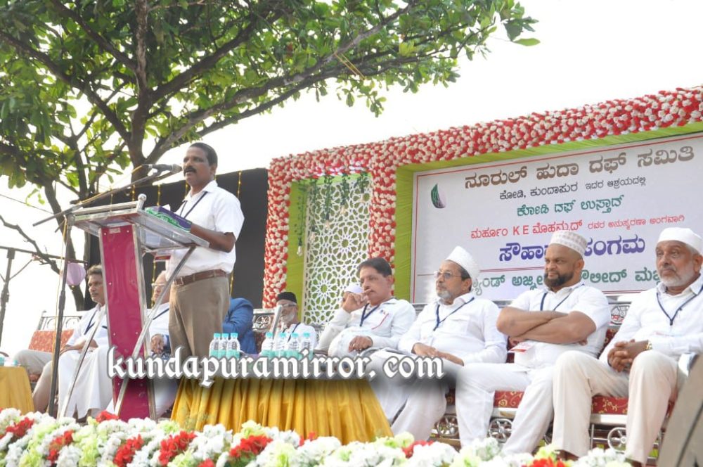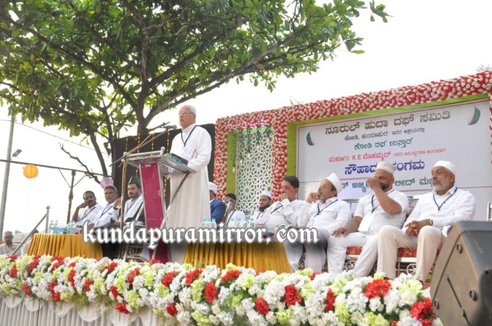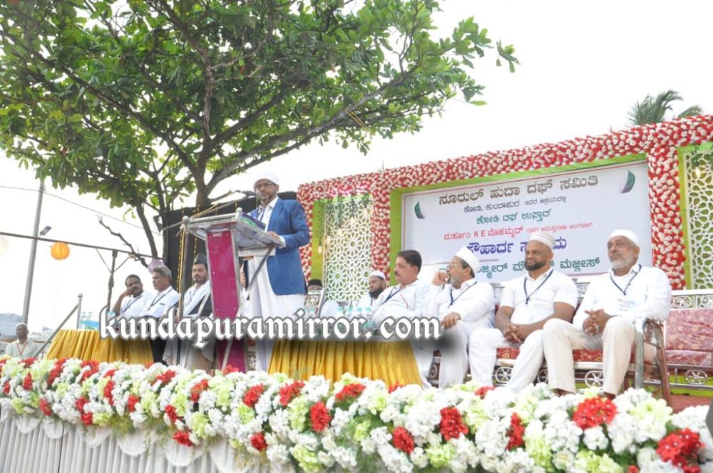 ಭಾನುವಾರ ಸಂಜೆ ಕೋಡಿ ಬೀಚ್ ಹತ್ತಿರ ನೂರುಲ್ ಹುದಾ ದಫ್ ಸಮಿತಿ ಆಯೋಜಿಸಿದ್ದ ಸೌಹಾರ್ದ ಸಂಗಮ-2022 ಕಾರ್ಯಕ್ರಮದಲ್ಲಿ ಅವರು ಮಾತನಾಡಿದರು.
