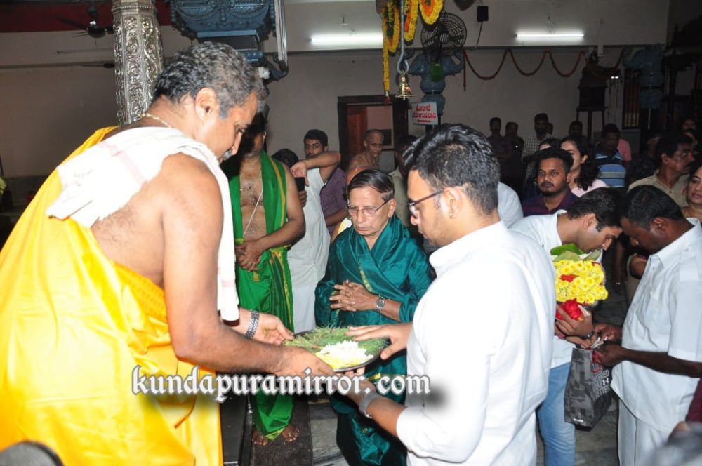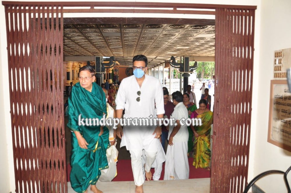 ಕಾರ್ಯಕ್ರಮವೊಂದರ ನಿಮಿತ್ತ ಕುಂದಾಪುರಕ್ಕೆ ಆಗಮಿಸಿದ ವೇಳೆ ಅವರು ಆನೆಗುಡ್ಡೆಗೆ ಭೇಟಿ ನೀಡಿದ್ದು ವಿನಾಯಕನ ದರ್ಶನ ಪಡೆದರು. ಈ ವೇಳೆ ಅವರನ್ನು ಪೂರ್ಣಕುಂಭ ಸ್ವಾಗತದೊಂದಿಗೆ ಭರಮಾಡಿಕೊಂಡು ದೇವಸ್ಥಾನದಲ್ಲಿ ವಿಶೇಷ ಪೂಜೆ ಸಲ್ಲಿಸಲಾಯಿತು.