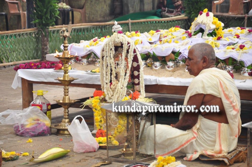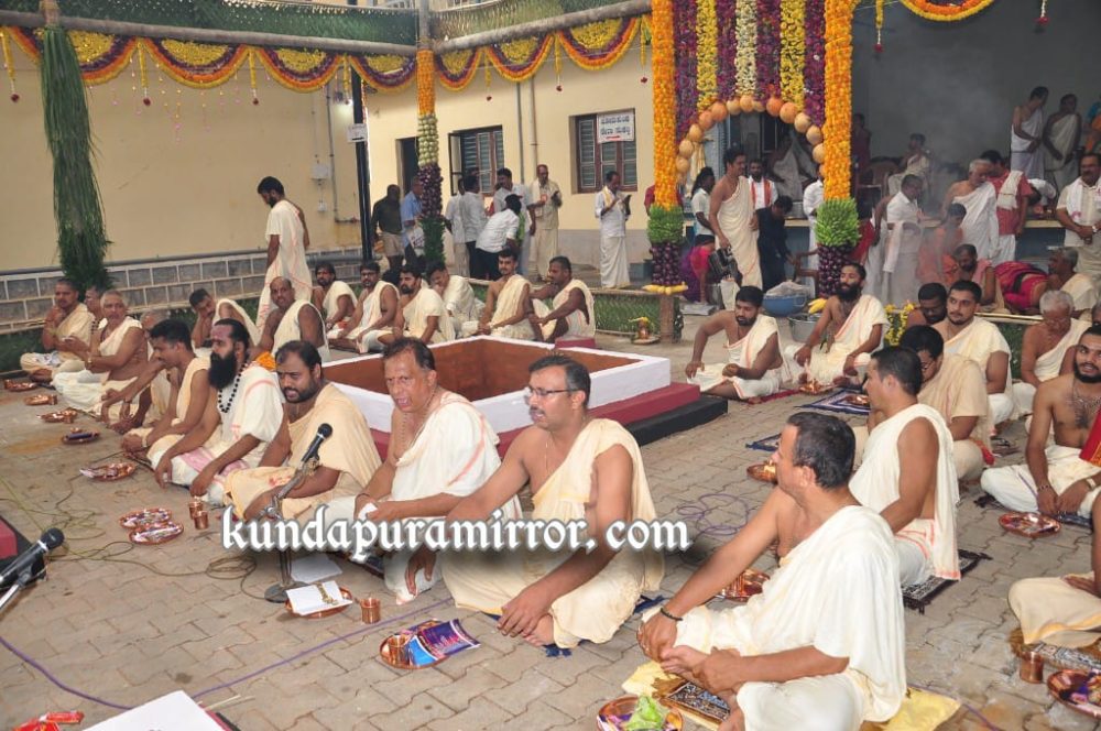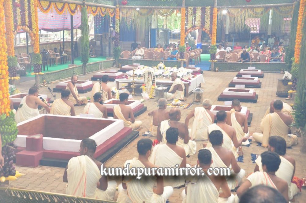 ಕುಂದಾಪುರ : ಇಲ್ಲಿನ ಕುಂದೇಶ್ವರ ದೇವಸ್ಥಾನದ ವ್ಯವಸ್ಥಾಪನಾ ಸಮಿತಿ ಹಾಗೂ ಕ್ಷೇತ್ರದ ಭಕ್ತರ ಒಗ್ಗೂಡುವಿಕೆಯಿಂದ ಲೋಕ ಕಲ್ಯಾಣಾರ್ಥವಾಗಿ ಹಮ್ಮಿಕೊಂಡಿರುವ ಮಹಾರುದ್ರ ಯಾಗಕ್ಕಾಗಿ ಶುಕ್ರವಾರ ತಂತ್ರಿ ಪ್ರಸನ್ನಕುಮಾರ ಐತಾಳ ಅವರ ನೇತ್ರತ್ವದಲ್ಲಿ ಧಾರ್ಮಿಕ ಕಾರ್ಯಕ್ರಮಗಳಿಗೆ ಚಾಲನೆ ನೀಡಲಾಗಿದೆ.