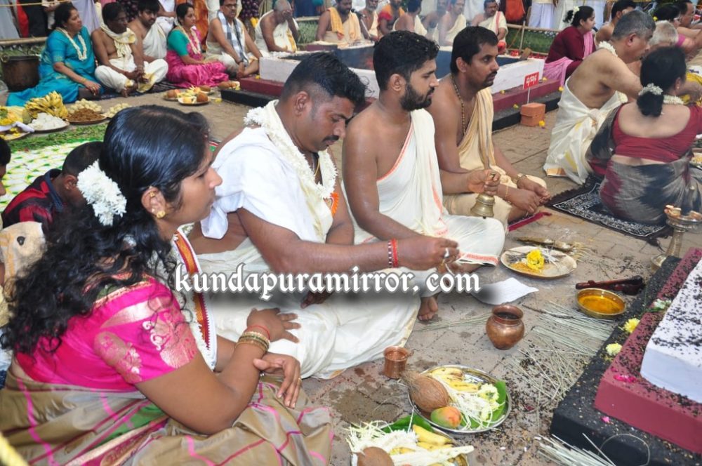 ಕುಂದಾಪುರ :ಕುಂದೇಶ್ವರ ದೇವಸ್ಥಾನದ ವ್ಯವಸ್ಥಾಪನಾ ಸಮಿತಿ ಹಾಗೂ ಕ್ಷೇತ್ರದ ಭಕ್ತರ ಒಗ್ಗೂಡುವಿಕೆಯಿಂದ ಲೋಕ ಕಲ್ಯಾಣಾರ್ಥವಾಗಿ ಹಮ್ಮಿಕೊಂಡಿರುವ ಮಹಾರುದ್ರ ಯಾಗಕ್ಕಾಗಿ ಸೋಮವಾರ ಮಧ್ಯಾಹ್ನ ತಂತ್ರಿ ಪ್ರಸನ್ನಕುಮಾರ ಐತಾಳ ಅವರ ನೇತ್ರತ್ವದಲ್ಲಿ ಪೂರ್ಣಾಹುತಿ ನಡೆಯಿತು.