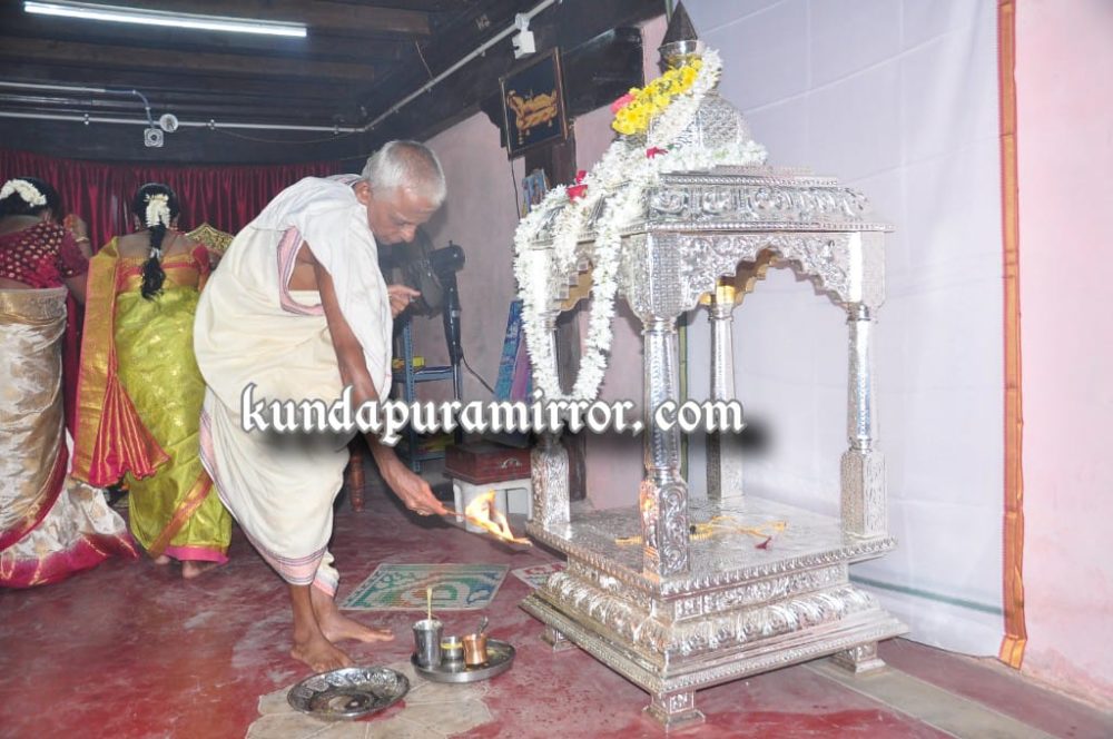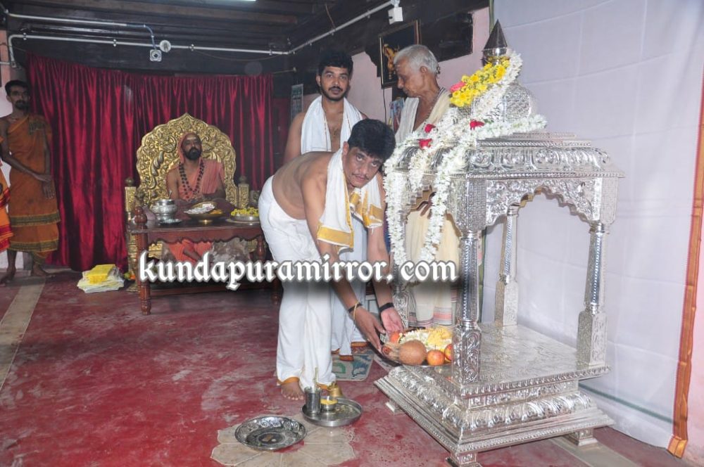 ಪೂರ್ವಾಹ್ನ ವಿವಿಧ ಧಾರ್ಮಿಕ ಕಾರ್ಯಕ್ರಮಗಳೊಂದಿಗೆ ಶ್ರೀ ಮಠದಲ್ಲಿ ಸುಂದರ ಶಿಲಾಮಯ ಗೋಪುರಲೋಕಾಪರ್ಣೆ ಪ್ರಯುಕ್ತ ಅನ್ನಸಂತಪರ್ಣೆ,ವಿವಿಧ ಭಜನಾ ತಂಡಗಳ ನಡುವೆ ಹಾಗೂ ಜ್ಯೋತಿವೀರ ನಾರಾಯಣ ಭಟ್ ಉಡುಪಿ ಇವರು ಬೆಳ್ಳಿ ಮಂಟಪವನ್ನು ಶ್ರೀಮಠಕ್ಕೆ ಹಸ್ತಾಂತರಿಸಿ ಪೂಜಾ ಕಾರ್ಯದಲ್ಲಿ ಭಾಗಿಯಾದರು.