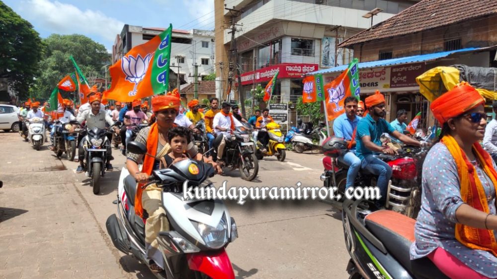 ಕುಂದಾಪುರ: ಪ್ರಧಾನಿ ನರೇಂದ್ರ ಮೋದಿ ಅವರ ನೇತೃತ್ವದ ಕೇಂದ್ರ ಸರಕಾರ ೮ ವರ್ಷಗಳ ಯಶಸ್ವಿ ಆಡಳಿತವನ್ನು ಪೂರೈಸಿದ ಹಿನ್ನೆಲೆಯಲ್ಲಿ ಬಿಜೆಪಿ ಯುವ ಮೋರ್ಚಾ ಕುಂದಾಪುರದ ವತಿಯಿಂದ ‘ವಿಕಾಸ ತೀರ್ಥ ಬೃಹತ ಬೈಕ್ ರ್ಯಾಲಿ’ ರವಿವಾರ ನಡೆಯಿತು.