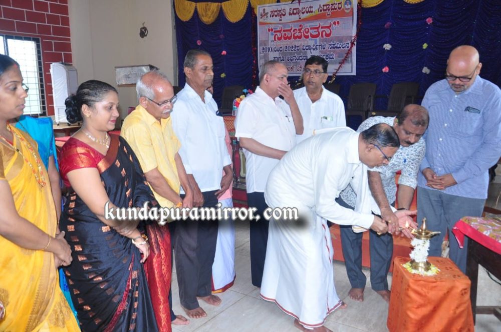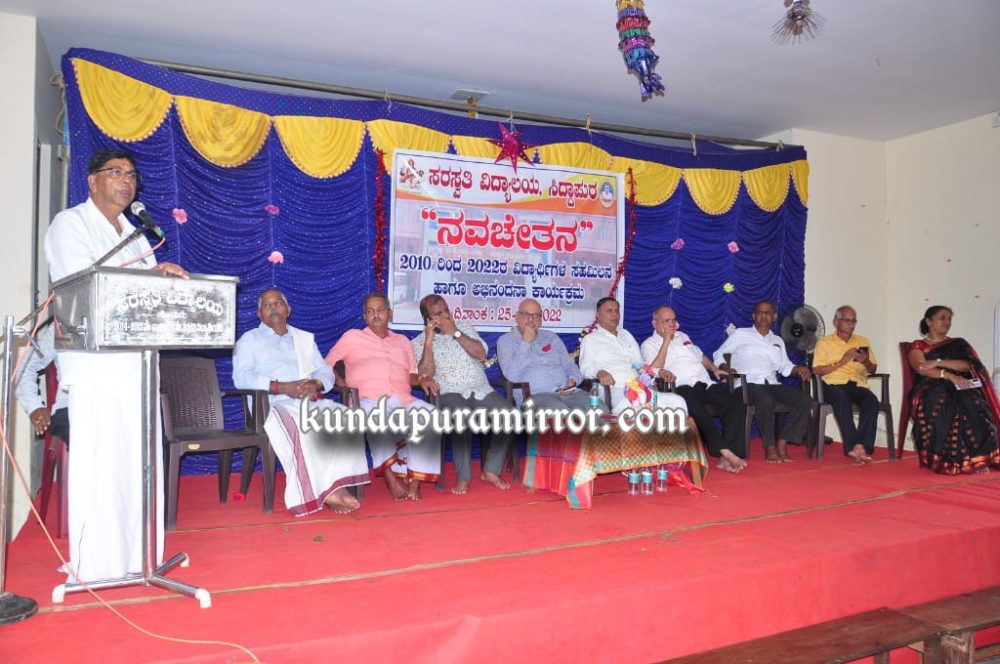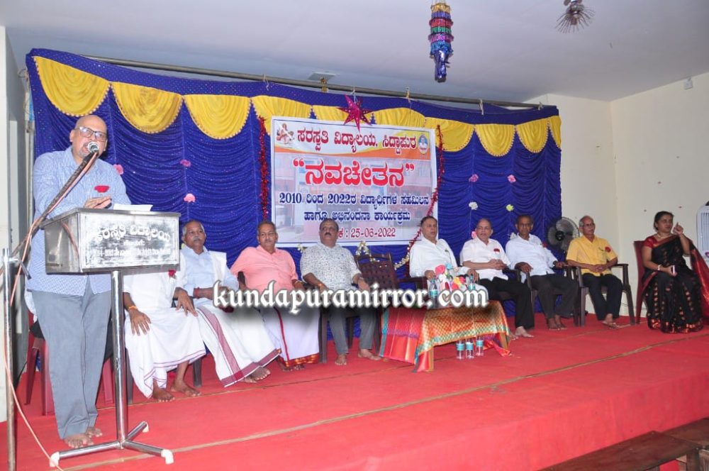 ಅವರು ಶನಿವಾರದಂದು ಸಿದ್ದಾಪುರ ಸರಸ್ವತಿ ವಿದ್ಯಾಲಯದಲ್ಲಿ ನಡೆದ ವಿದ್ಯಾರ್ಥಿಗಳ ಸಹಮಿಲನ ‘ನವಚೇತನ’, ಅಭಿನಂದನಾ ಕಾರ್ಯಕ್ರಮವನ್ನು ಉದ್ಘಾಟಿಸಿ ಮಾತನಾಡಿದರು.