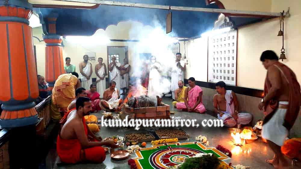 ಕೋಟ: ಸಾಲಿಗ್ರಾಮ ಶ್ರೀ ಗುರುನರಸಿಂಹ ದೇವಸ್ಥಾನದಲ್ಲಿ ಭಾನುವಾರ ಕರ್ಕಾಟಕ ಸಂಕ್ರಮಣದ ವಿಶೇಷವಾಗಿ ಲೋಕಕಲ್ಯಾಣಾರ್ಥವಾಗಿ ಶ್ರೀ ಗಣಪತಿ ಅಥರ್ವಶೀರ್ಷ ಹೋಮವನ್ನು ಶ್ರೀದೇವಳದ ತಂತ್ರಿಗಳಾದ ವೇ. ಮೂ. ಕೃಷ್ಣ ಸೋಮಯಾಜಿ ಇವರ ಪ್ರಧಾನ ಆಚಾರ್ಯತ್ವದಲ್ಲಿ, ಸಹ ಋತ್ವಿಜರ ಸಹಕಾರದೊಂದಿಗೆ ಶ್ರೀ ದೇವಳದ ಆಡಳಿತ ಮಂಡಳಿಯ ಸದಸ್ಯರಾದ ಆರ್ ಎಂ. ಶ್ರೀಧರ ರಾವ್ ದಂಪತಿಗಳು ಮಿಯಾಪದವು ಇವರ ಯಜಮಾನತ್ವದಲ್ಲಿ ನೆರವೇರಿತು.