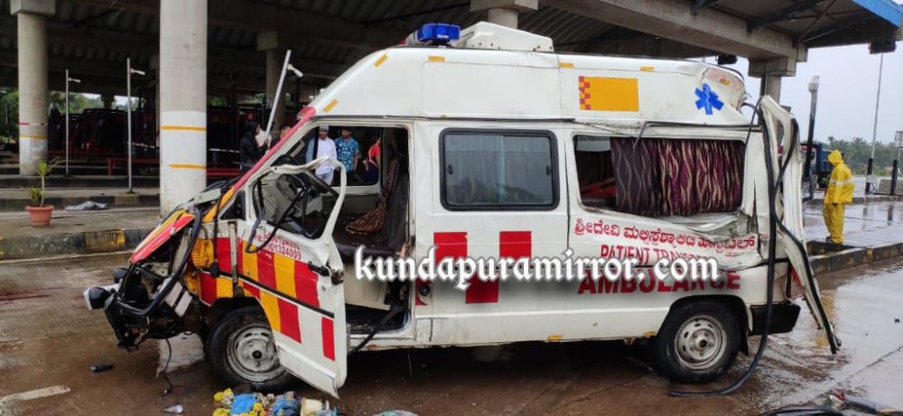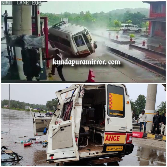 ಬೈಂದೂರು :ಹೊನ್ನಾವರ ಕಡೆಯಿಂದ ಅತೀ ವೇಗವಾಗಿ ಬಂದ ಅಂಬ್ಯುಲೆನ್ಸ್ ಚಾಲಕನ ನಿಯಂತ್ರಣ ತಪ್ಪಿ ಟೋಲ್ ಸಂಗ್ರಹಣಾ ಕೌಂಟರ್’ಗೆ ಢಿಕ್ಕಿ ಹೊಡೆದು ಮಗುಚಿ ಬಿದ್ದ ಭೀಕರ ಘಟನೆ ತಾಲೂಕಿನ ಶಿರೂರು ಟೋಲ್ ಪ್ಲಾಜಾದಲ್ಲಿ ನಡೆದಿದೆ.