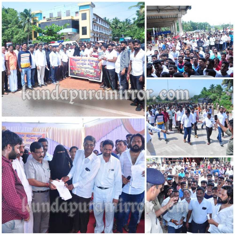 ಶಿರೂರು ಪೇಟೆಯಿಂದ ಆರಂಭವಾದ ಬೃಹತ್ ಪ್ರತಿಭಟನೆಯೂ, ಸುಂಕ ವಸುಲಾತಿ ಕೇಂದ್ರದವರಗೆ ಆಗಮಿಸಿ ಪ್ರತಿಭಟನಾ ಸಭೆ ನಡೆಯಿತು