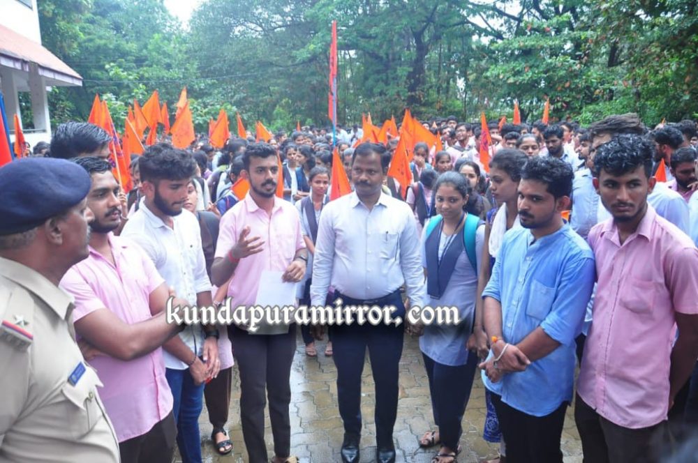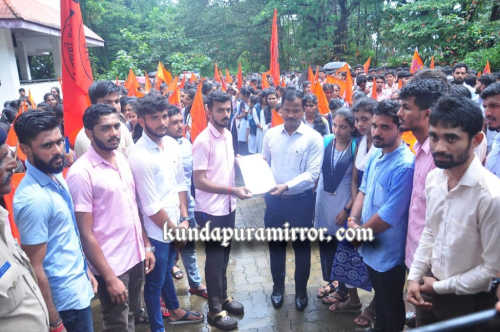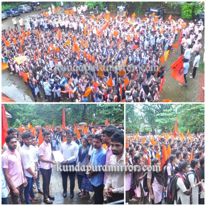 ಕುಂದಾಪುರದ ಶಾಸ್ತ್ರಿ ಸರ್ಕಲ್ ಬಳಿಯಿಂದ ಕಾಲ್ನಡಿಗೆ ಜಾಥದ ಮೂಲಕ ಮಿನಿ ವಿಧಾನಸೌಧವರೆಗೆ ಬಂದ ನೂರಾರು ವಿದ್ಯಾರ್ಥಿಗಳು, ವಿವಿಧ ಬೇಡಿಕೆ ಈಡೇರಿಸಬೇಕು ಎಂದು ಆಗ್ರಹಿಸಿದರು. ಪ್ರತಿಭಟನೆಯಲ್ಲಿ ಕುಂದಾಪುರದ ಭಂಡಾರ್ಕಾರ್ಸ್ ಕಾಲೇಜು, ಡಾ| ಬಿ.ಬಿ.ಹೆಗ್ಡೆ ಕಾಲೇಜು, ಬಸ್ರೂರು ಶಾರದಾ ಕಾಲೇಜು, ಬ್ರಹ್ಮಾವರದ ಎಸ್ಎಂಎಸ್ ಕಾಲೇಜು, ಕೋಟೇಶ್ವರ ಸರಕಾರಿ ಪ್ರಥಮ ದರ್ಜೆ, ಬಾರ್ಕೂರು ಕಾಲೇಜುಗಳ ನೂರಾರು ಮಂದಿ ವಿದ್ಯಾರ್ಥಿಗಳು ಭಾಗವಹಿಸಿದ್ದರು.