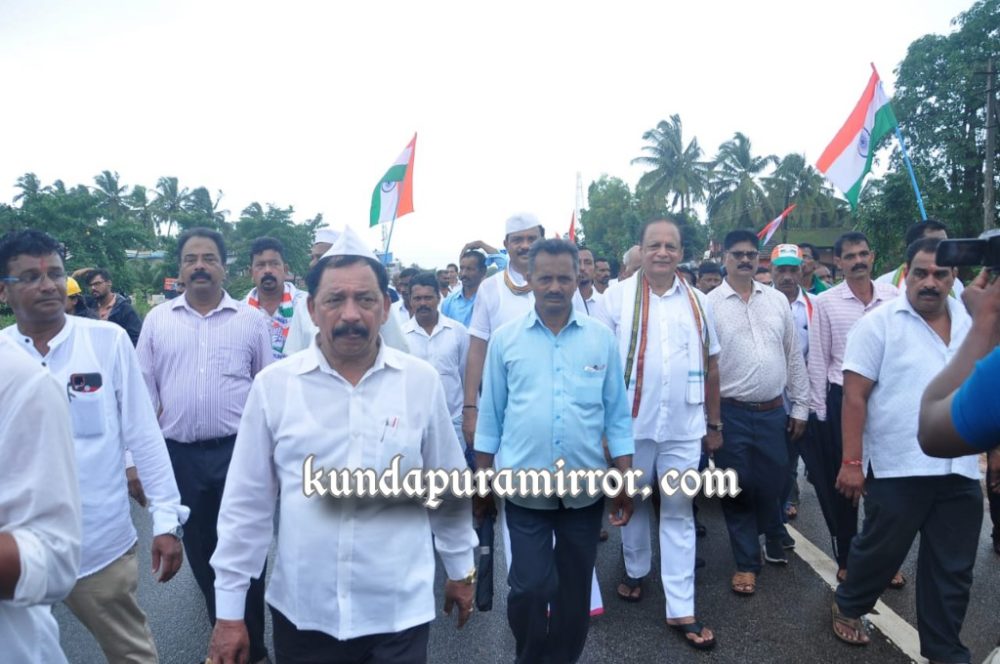 ಈ ಮೊದಲು ಕೋಟ ಬ್ಲಾಕ್ ಕಾಂಗ್ರೆಸ್ ಇಂದಿರಾ ಕಚೇರಿಯಿಂದ ಹೊರಟು ಸಾಲಿಗ್ರಾಮದ ಪೇಟೆಯ ಆಂಜನೇಯ ದೇವಸ್ಥಾನದ ಮಾರ್ಗದ ಮೂಲಕ ಹಾದುಹೋಗಿ ಕೋಟತಟ್ಟು ಕೋಟಮಾರ್ಗವಾಗಿ ಕುಂದಾಪುರ ಬ್ಲಾಕ್ ಕಾಂಗ್ರೆಸ್ನ ತೆಕ್ಕಟ್ಟೆಯಲ್ಲಿ ಪಾದಯಾತ್ರೆ ಸಮಾಪನಗೊಂಡಿತು.ತನ್ನ ಕಾಲುನೋವಿನ ನಡುವೆಯಲ್ಲೂ ಬೈಂದೂರು ಮಾಜಿ ಶಾಸಕ ಗೋಪಾಲ ಪೂಜಾರಿ ಪಾದಯಾತ್ರೆಯಲ್ಲಿ ಭಾಗವಹಿಸಿ ಕಾರ್ಯಕರ್ತರಲ್ಲಿ ಹುರುಪು ತುಂಬಿದರು.