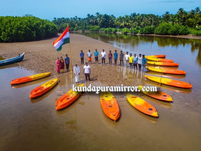 ಕೋಟ: 75ನೇ ವರ್ಷದ ಸ್ವಾತಂತ್ರ್ಯ ದಿನಾಚರಣೆಯ ಅಮೃತ ಮಹೋತ್ಸವದ ಅಂಗವಾಗಿ ರಾಷ್ಟ್ರ ಪ್ರೇಮವನ್ನು ಬಿತ್ತುವ ಸಲುವಾಗಿ ಹರ್ ಘರ್ ತಿರಂಗ ಅಭಿಯಾನವನ್ನು ಸರ್ಕಾರ ಹಮ್ಮಿಕೊಂಡು ಪ್ರತೀ ಮನೆಯ ಮೇಲೆ ರಾಷ್ಟ್ರ ಧ್ವಜ ಹಾರಿಸುವ ಪಣ ತೊಟ್ಟು ಯಶಸ್ವಿಗೊಳಿಸಿದರೆ, ಸಾಲಿಗ್ರಾಮದ ಪಾರಂಪಳ್ಳಿ ಸೀತಾನದಿಯಲ್ಲಿ ಯುವಕರ ತಂಡ ವಿಭಿನ್ನವಾಗಿ ಅತೀ ರೋಚಕ ಎನಿಸುವ ರೀತಿಯಲ್ಲಿ ರಾಷ್ಟ್ರ ಪ್ರೇಮವನ್ನು ಮೆರೆದಿದ್ದಾರೆ. ಸೀತಾ ನದಿಯ ಉಪನದಿಯಲ್ಲಿ ಕಾಯಕಿಂಗ್ ಮೂಲಕ ಪ್ರಕೃತಿ ವಿಸ್ಮಯಗಳನ್ನು ತೋರಿಸಿ ಜನರಲ್ಲಿ ಪ್ರಕೃತಿ ಪ್ರೇಮವನ್ನು ಬಿತ್ತುವ ಕೆಲಸ ಮಾಡುತ್ತಿರುವ ಮಿಥುನ್ ಮೆಂಡನ್ ಮತ್ತು ಲೋಕೇಶ್ ಮೆಂಡನ್ ಅವರ ತಂಡ ಇದೀಗ ಈ ವಿಭಿನ್ನ ಪ್ರಯತ್ನದಲ್ಲಿ ಮತ್ತೊಮ್ಮೆ ಸೈ ಎನಿಸಿದ್ದಾರೆ.