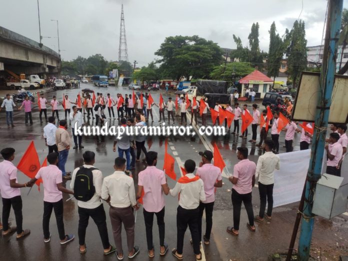 ಗುರುವಾರ ಕುಂದಾಪುರದ ಶಾಸ್ತ್ರಿ ಸರ್ಕಲ್ ನಲ್ಲಿ ವೀರ ಸಾವರ್ಕರ್ ಅವರಿಗೆ ಮಾಡಲಾಗುತ್ತಿರುವ ಅವಮಾನವನ್ನು ಖಂಡಿಸಿ, ಹಿಂದೂ ಜಾಗರಣ ವೇದಿಕೆ ಯುವ ವಿಭಾಗ, ಹಿಂದೂ ಯುವ ವಾಹಿನಿ ಕುಂದಾಪುರ ನೇತೃತ್ವದಲ್ಲಿ ನಾನೂ ಸಾವರ್ಕರ್, ನಾವೂ ಸಾವರ್ಕರ್ ಮಾನವ ಸರಪಳಿ ಅಭಿಯಾನದಲ್ಲಿ ಭಾಗವಹಿಸಿ ಮಾತನಾಡಿದ ಅವರು, ವೀರ ಸಾವರ್ಕರ್ ಅವರು ಸ್ವಾತಂತ್ರ್ಯ ಚಳವಳಿಯಲ್ಲಿ ಭಾಗವಹಿಸಿ ಜೈಲು ವಾಸ ಅನುಭವಿಸಿದ್ದಾರೆ. ದೇಶಕ್ಕೋಸ್ಕರ ತಮ್ಮ ಇಡೀ ಜೀವನವನ್ನೇ ತ್ಯಾಗ ಮಾಡಿದ ಅವರನ್ನು ಇಂದು ಅಪಮಾನ ಮಾಡಲಾಗುತ್ತಿರುವುದು ಖಂಡನೀಯ. ಸ್ವಾತಂತ್ರ್ಯ ಚಳುವಳಿಯಲ್ಲಿ ಸಾವರ್ಕರ್ ಅವರ ತ್ಯಾಗ ಅಪಾರ ಎಂದರು.