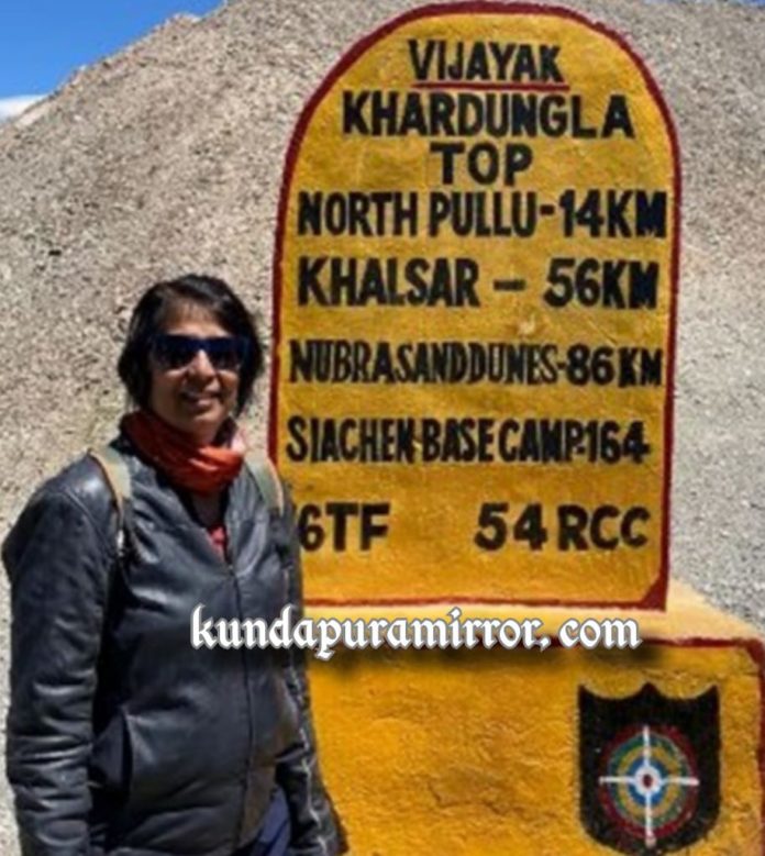 ಕುಂದಾಪುರ: ಕುಂದಾಪುರ ಮೂಲದ 54ರ ಹರೆಯದ ವಿಲ್ಮಾ ಫೆಡ್ರೆಟಿಯಾ ಕರ್ವಾಲೋ ಅವರು ವಿಶ್ವದ ಎರಡನೇ ಅತಿ ಎತ್ತರದ ಮೋಟಾರು ವಾಹನ ರಸ್ತೆಯಾದ ಖಾರ್ದುಂಗ್ ಲಾ ಪಾಸ್ನಲ್ಲಿ ಮೋಟರ್ಬೈಕ್ ಪ್ರಯಾಣದ ಕನಸನ್ನು ನನಸಾಗಿಸಿಕೊಳ್ಳುವ ಮೂಲಕ ಈ ಸಾಧನೆ ಮಾಡಿದ ಭಾರತದ ಹಿರಿಯ ಮಹಿಳೆ ಎನ್ನುವ ಹೆಗ್ಗಳಿಕೆಗೆ ಪಾತ್ರರಾಗಿದ್ದಾರೆ. ವಿಲ್ಮಾ ಫೆಡ್ರೆಟಿಯಾ ಕರ್ವಾಲೋ ತನ್ನ ಮೋಟಾರ್ಸೈಕಲ್ನಲ್ಲಿ ‘ಲೇಹ್ನಿಂದ ಲೇಹ್ಗೆ’ ಹಿಮಾಲಯದ ಯಾತ್ರೆಯಲ್ಲಿ ಖುರ್ದುಂಗ್ ಲಾ, ನುಬ್ರಾ, ಹಂಡರ್, ಪ್ಯಾಂಗೊಂಗ್ ಲೇಕ್, ತ್ಸೊ ಮೊರಿರಿ ಮೂಲಕ ಹಾದು ಲೇಹ್ ತಲುಪಿದರು.