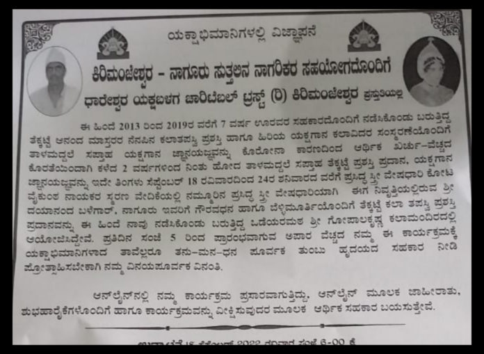 ಟ್ರಸ್ಟ್ ವತಿಯಿಂದ ೨೦೧೬ರಿಂದ ಉಡುಪಿಯಲ್ಲಿ ಯಕ್ಷ ಅಷ್ಟಾಹ ಎಂದು ೮ ದಿನಗಳ ಕಾಲ ಯಕ್ಷಗಾನ ಬಯಲಾಟ ಪ್ರದರ್ಶನವನ್ನು ಪರ್ಯಾಯ ಮಠದ ಸಹಯೋಗದಲ್ಲಿ ನಡೆಸಲಾಗುತ್ತಿದ್ದು, ೨೦೧೩ರಿಂದ ಕಿರಿಮಂಜೇಶ್ವರದಲ್ಲಿ ತಾಳಮದ್ದಳೆ ಸಪ್ತಾಹವನ್ನು ನಡೆಸಿಕೊಂಡು ಬರಲಾಗುತ್ತಿದೆ. ಕಲಾವಿದರಿಗೆ ರಜತ ಸ್ಮರಣಿಕೆ ಸಹಿತ ಸಮ್ಮಾನ, ಸಹಾಯಧನ, ತೆಕ್ಕಟ್ಟೆ ಆನಂದ ಮಾಸ್ಟರ್ ನೆನಪಿನ ಕಲಾತಪಸ್ವಿ ಪ್ರಶಸ್ತಿ ಪ್ರದಾನ ಹೀಗೆ ಅನೇಕ ಚಟುವಟಿಕೆಗಳನ್ನು ನಡೆಸಿಕೊಂಡು ಬರಲಾಗುತ್ತಿದೆ. ಈ ಬಾರಿಯ ತಾಳಮದ್ದಳೆ ಸಪ್ತಾಹವನ್ನು ಸೆ.೧೮ರಂದು ಗೃಹಸಚಿವರು ಉದ್ಘಾಟಿಸಿ, ಹಿಂದುಳಿದ ವರ್ಗಗಳ ಹಾಗೂ ಸಮಾಜ ಕಲ್ಯಾಣ ಇಲಾಖೆ ಸಚಿವ ಕೋಟ ಶ್ರೀನಿವಾಸ ಪೂಜಾರಿ, ಹಿಂದುಳಿದ ವರ್ಗಗಳ ಆಯೋಗದ ಅಧ್ಯಕ್ಷ ಜಯಪ್ರಕಾಶ್ ಹೆಗ್ಡೆ, ಬೈಂದೂರು ಶಾಸಕ ಬಿ. ಎಂ. ಸುಕುಮಾರ ಶೆಟ್ಟಿ, ಮಾಜಿ ಸಚಿವ ಪ್ರಮೋದ್ ಮಧ್ವರಾಜ್, ಸಹಕಾರಿ ಯೂನಿಯನ್ ಅಧ್ಯಕ್ಷ ಎಸ್. ಜಯಕರ ಶೆಟ್ಟಿ ಇಂದ್ರಾಳಿ, ಕಂಬದಕೋಣೆ ರೈತರ ಸೇವಾ ಸಹಕಾರಿ ಸಂಘದ ಅಧ್ಯಕ್ಷ ಎಸ್. ಪ್ರಕಾಶ್ಚಂದ್ರ ಶೆಟ್ಟಿ, ಉದ್ಯಮಿ ಉಮೇಶ್ ಕೋಟ ವೈಕುಂಠ ಆಗಮಿಸಲಿದ್ದಾರೆ.
