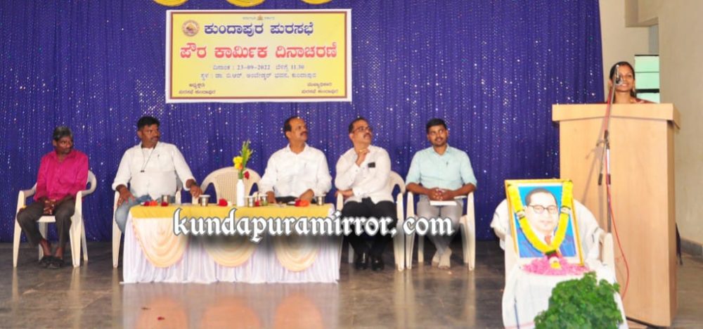 ಕುಂದಾಪುರ ಪುರಸಭಾ ವತಿಯಿಂದ ಡಾ.ಬಿ.ಆರ್ ಅಂಬೇಡ್ಕರ್ ಭವನದಲ್ಲಿ ನಡೆದ ಪೌರಕಾರ್ಮಿಕರ ದಿನಾಚರಣೆ ಕಾರ್ಯಕ್ರಮವನ್ನು ಉದ್ಘಾಟಿಸಿ ಮಾತನಾಡಿದರು.