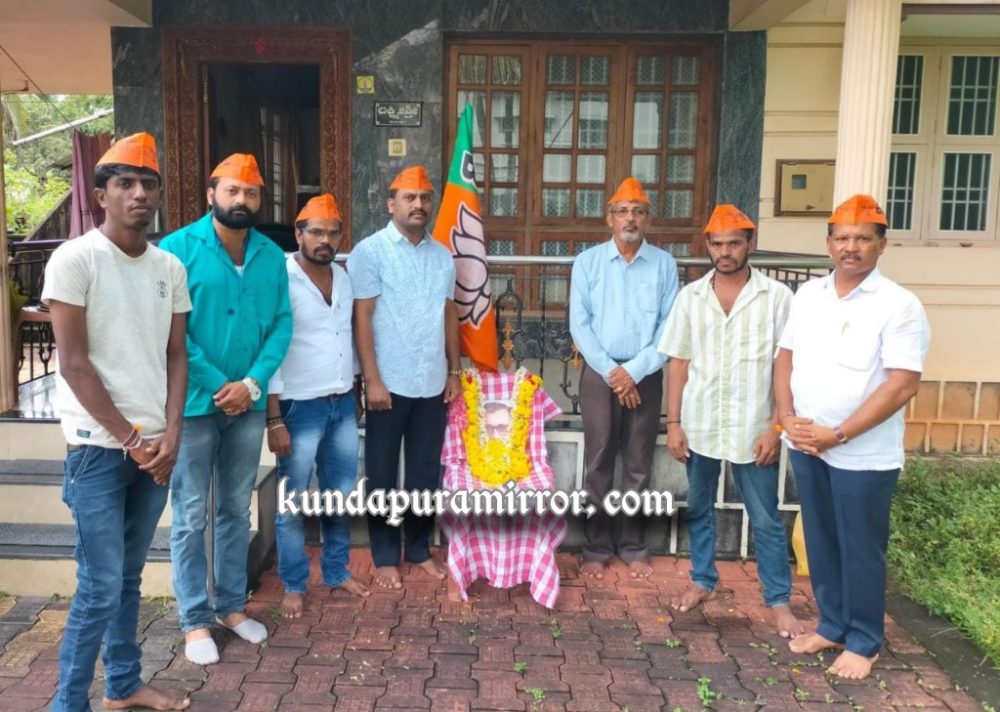 ಕುಂದಾಪುರ :ಭಾರತೀಯ ಜನಸಂಘ ಸ್ಥಾಪಕರಾದ ಪಂಡಿತ್ ದೀನದಯಾಳ್ ಉಪಾಧ್ಯಾಯರ ಜಯಂತಿಯ ಪ್ರಯುಕ್ತ ಕುಂದಾಪುರ ಮಂಡಲ ಅಧ್ಯಕ್ಷ ಶಂಕರ ಅಂಕದಕಟ್ಟೆ ಅವರ ಸ್ವಬೂತ್ ನಲ್ಲಿ ಪಕ್ಷದ ಹಿರಿಯ ಕಾರ್ಯಕರ್ತರಾದ ಸದಾನಂದ ನಾಯ್ಕ್ ಅವರ ನಿವಾಸದಲ್ಲಿ ದೀನದಯಾಳ್ ಉಪಾಧ್ಯಾಯರ ಭಾವಚಿತ್ರಕ್ಕೆ ಪುಷ್ಪ ನಮನ ಸಲ್ಲಿಸಿ ರಾಷ್ಟ್ರಕ್ಕಾಗಿ ಮುಡಿಪಾಗಿಟ್ಟ ಅವರ ಜೀವನ, ಅವರ ತ್ಯಾಗ ಬಲಿದಾನ, ಪಕ್ಷದ ಕಾರ್ಯಕರ್ತರಿಗೆ ಅವರು ಹಾಕಿಕೊಟ್ಟ ದಾರಿ, ಆದರ್ಶವನ್ನು ಸ್ಮರಿಸಿಕೊಳ್ಳುವುದರ ಮೂಲಕ ಅವರ ಜಯಂತಿಯನ್ನು ಆಚರಿಸಲಾಯಿತು.
