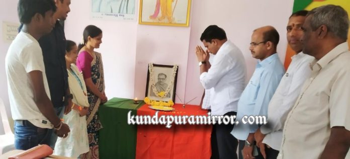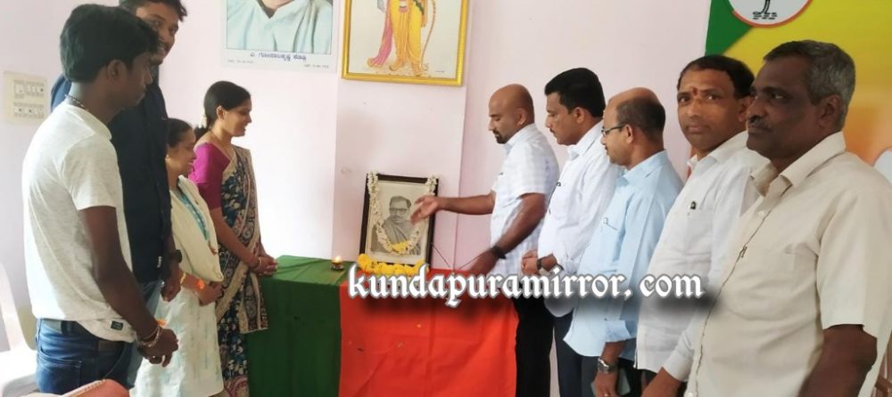 ಕುಂದಾಪುರ :ಭಾರತೀಯ ಜನತಾ ಪಾರ್ಟಿ ಕುಂದಾಪುರ ಮಂಡಲ ವತಿಯಿಂದ ಇಂದು ಭಾರತೀಯ ಜನಸಂಘ ಸ್ಥಾಪಕರಾದ ಪಂಡಿತ್ ದೀನದಯಾಳ್ ಉಪಾಧ್ಯಾಯರ ಜಯಂತಿಯ ಪ್ರಯುಕ್ತ ಪಕ್ಷದ ಕಚೇರಿಯಲ್ಲಿ ಅವರ ಭಾವಚಿತ್ರಕ್ಕೆ ಪುಷ್ಪ ನಮನ ಸಲ್ಲಿಸಿ ರಾಷ್ಟ್ರಕ್ಕಾಗಿ ಮುಡಿಪಾಗಿಟ್ಟ ಅವರ ಜೀವನ, ಅವರ ತ್ಯಾಗ ಬಲಿದಾನ, ಪಕ್ಷದ ಕಾರ್ಯಕರ್ತರಿಗೆ ಅವರು ಹಾಕಿಕೊಟ್ಟ ದಾರಿ, ಆದರ್ಶವನ್ನು ಸ್ಮರಿಸಿಕೊಳ್ಳುವುದರ ಮೂಲಕ ಅವರ ಜಯಂತಿಯನ್ನು ಆಚರಿಸಲಾಯಿತು.