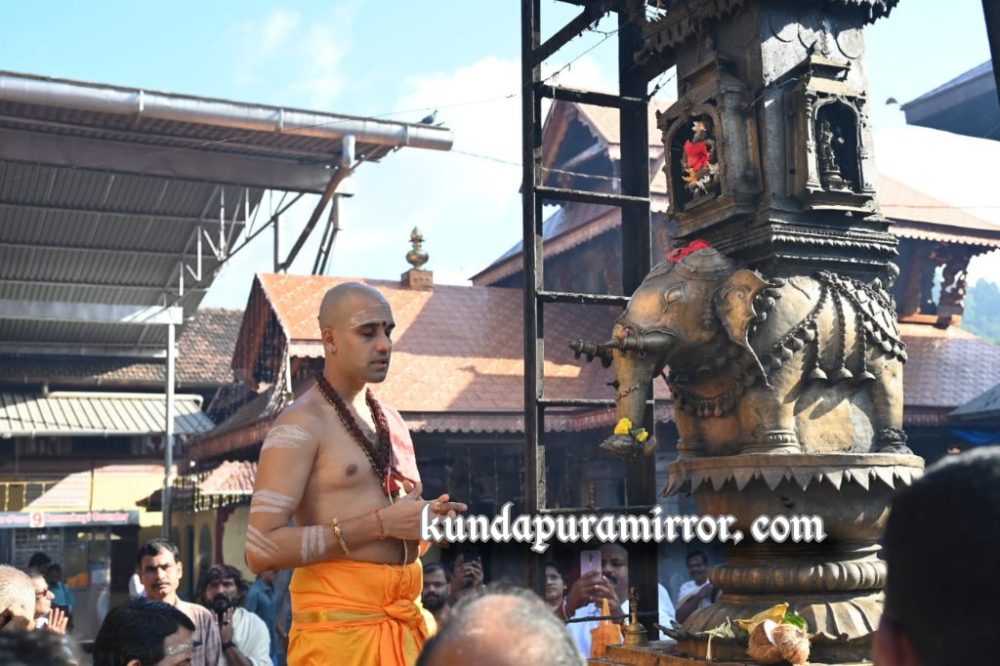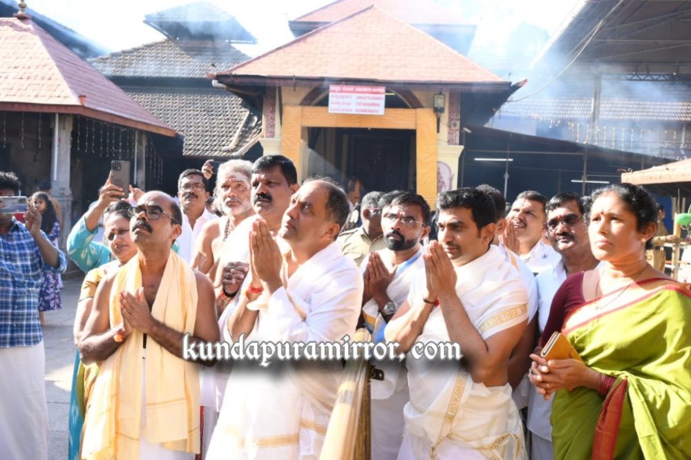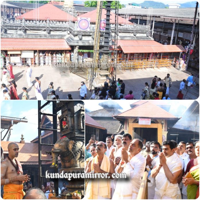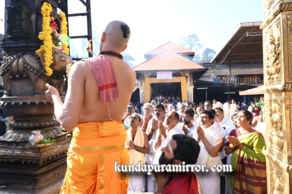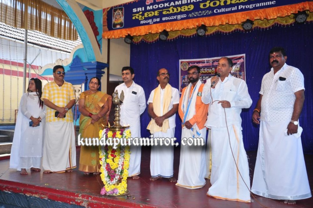 ಕೊಲ್ಲೂರು : ಶ್ರೀ ಮೂಕಾಂಬಿಕಾ ದೇವಸ್ಥಾನದಲ್ಲಿ ಮಹಾನವರಾತ್ರಿ ಮಹೋತ್ಸವಕ್ಕೆ ಸೋಮವಾರ ಚಾಲನೆ ನೀಡಲಾಯಿತು. ಬೆಳಗ್ಗೆ 8:30 ಗಂಟೆಗೆ ಗಣಪತಿ ಪೂಜೆಯೊಂದಿಗೆ ನವರಾತ್ರಿ ಪರ್ವಕ್ಕೆ ಚಾಲನೆ ನೀಡಿ ಶ್ರೀದೇವಿಗೆ ವಿಶೇಷ ಪೂಜೆ, ಮಂಗಳಾರತಿ ನಡೆಯಿತು. ಬಳಿಕ ದೇವಳದ ವ್ಯವಸ್ಥಾಪನಾ ಸಮಿತಿ ಅಧ್ಯಕ್ಷ ಕೆರಾಡಿ ಚಂದ್ರಶೇಖರ ಶೆಟ್ಟಿ ನವರಾತ್ರಿ ಮಹೋತ್ಸವದ ಸಾಂಸ್ಕೃತಿಕ ಉತ್ಸವಕ್ಕೆ ಚಾಲನೆ ನೀಡಿದರು.