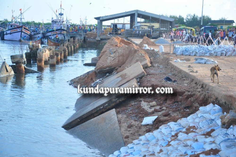 ಕುಸಿತಗೊಂಡ ಗಂಗೊಳ್ಳಿ ಜೆಟ್ಟಿ ನಿರ್ಮಾಣ ಪ್ರದೇಶಕ್ಕೆ ಗುರುವಾರ ಸಂಜೆ ಭೇಟಿ ನೀಡಿ ಪರಿಶೀಲಿಸಿ ಮಾಧ್ಯಮದ ಜೊತೆ ಮಾತನಾಡಿದರು.