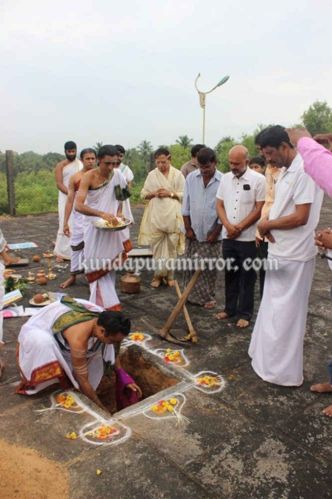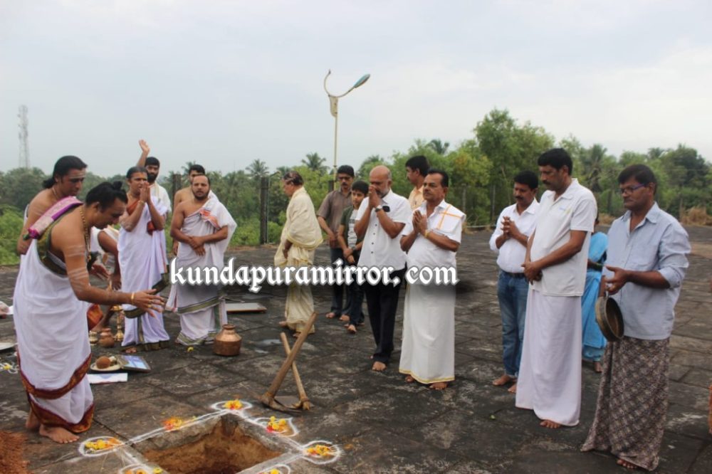 ಕುಂದಾಪುರ: ಜಗದ್ಗುರು ಶಂಕರಾಚಾರ್ಯ ಮಹಾಸಂಸ್ಥಾನ ದಕ್ಷಿಣಾಮ್ನಾಯ ಶೃಂಗೇರಿ ಶ್ರೀ ಶಾರದಾಪೀಠದ ಆಡಳಿತಕ್ಕೆ ಒಳಪಟ್ಟಿರುವ ಶ್ರೀ ನಾಗಾಚಲ ಅಯ್ಯಪ್ಪ ಸ್ವಾಮಿ ಮತ್ತು ದುರ್ಗಾಪರಮೇಶ್ವರಿ ದೇವಸ್ಥಾನ ಕುಂಭಾಶಿ ಇದರ ನೂತನ ಯಾಗಶಾಲೆ, ಸಭಾಭವನ, ಪಾಕಶಾಲೆ, ಭೋಜನಶಾಲೆ ಮತ್ತು ವಸತಿಗೃಹ ನಿರ್ಮಾಣದ ಶಿಲಾನ್ಯಾಸವನ್ನು ಡಾ.ರಾಮ್ಪ್ರಕಾಶ್ ಕಲ್ಗುಜ್ಜಿಕರ್ ಉದ್ಘಾಟಿಸಿದರು.