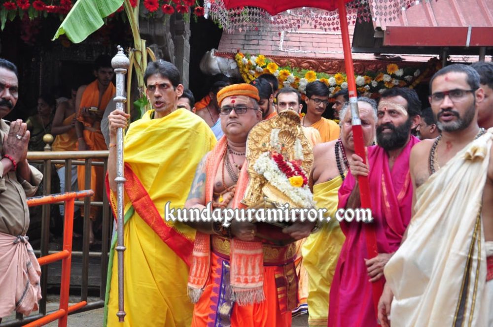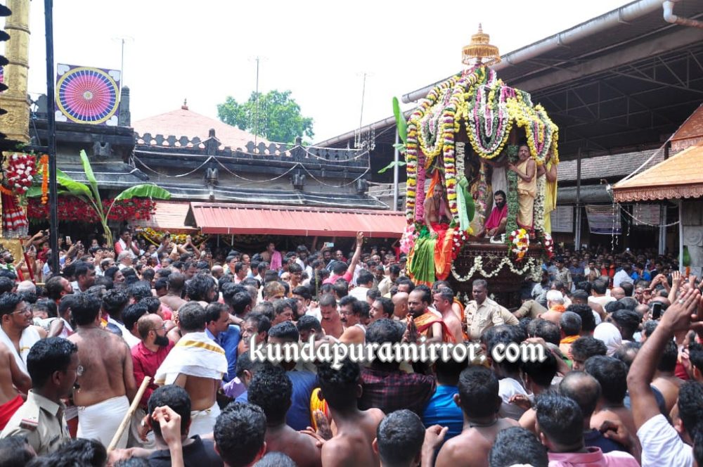 ಕೊಲ್ಲೂರು: ಕೊಲ್ಲೂರಿನ ಶ್ರೀ ಮೂಕಾಂಬಿಕಾ ದೇವಸ್ಥಾನದಲ್ಲಿ ಮಂಗಳವಾರ ಶರನ್ನವರಾತ್ರಿಯ ಅಂಗವಾಗಿ ಮಧ್ಯಾಹ್ನ 1.50 ಕ್ಕೆ ನಡೆದ ಶ್ರೀ ದೇವಿಯ ವೈಭವದ ರಥೋತ್ಸವ ನಡೆಯಿತು.
